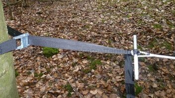 Auf jeden Fall ist das kein dünnes Drahtseil was sich in die Borke gräbt und dem Baum schadet ...