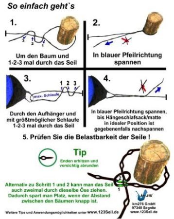 Ich wollte mal sehen, wie ich am besten meine Hängematte aufhänge. Ich habe einiges schon auf englisch gelesen, aber verstehe es nicht so gut. Vielleicht kann einer auch Bilder hochladen, damit ich mir besser vorstellen kann, wie man eine Hängematte aufhängt.