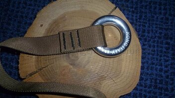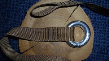 Na, damit wenn ich den Gurt um den Baum lege ich das eine Gurtende durch den Aluring ziehen kann, welcher dann nicht an so einer scharfkantigen high-tech Klemme hängen muss.