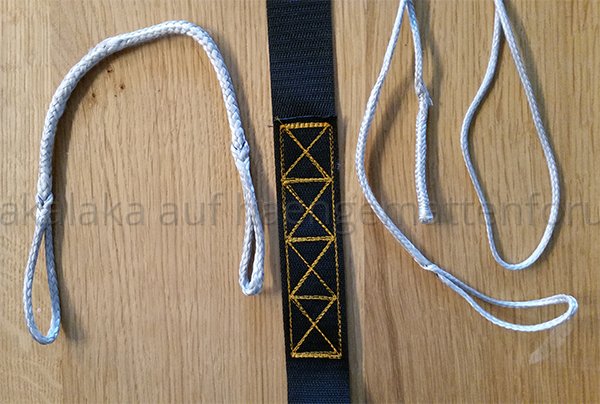 UND - falls der Gurt mal nicht ausreichen sollte - kann ich den mittels der zweiten festen Schlaufe einfacher verlängern, ohne Knoten zu müssen.Bilder?!