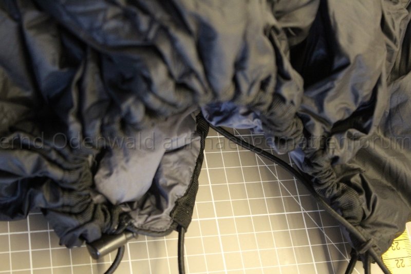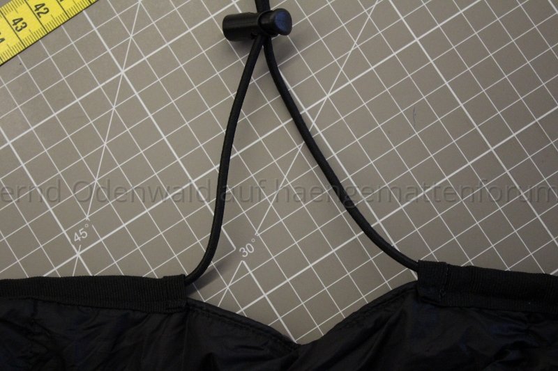 In der Mitte, die lange Seite, ist eine Öffnung im Tunnel mit Kordelstopper. So kannste die Spannung aus der HM heraus anpassen.