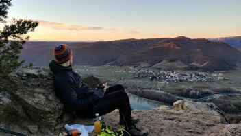 Trotz das ich dem unten erwähnten Event nicht beiwohne, hätte ich auch weder Zeit noch Nerv zu, da auch bei uns zwischen den Tagen Arbeit anliegt, hab ich so mein persönliche Ritual. Auf dem Heimweg vom Job, natürlich mit dem Rad, liegt ein netter Aussichtsturm unweit der Strecke. Da verweile ich dann am Silvestertag für eine kurze Zeit und mach mir einen Espresso (der sich dann im Verlauf der Nacht auch eigentlich als vorteilhaft erweist).