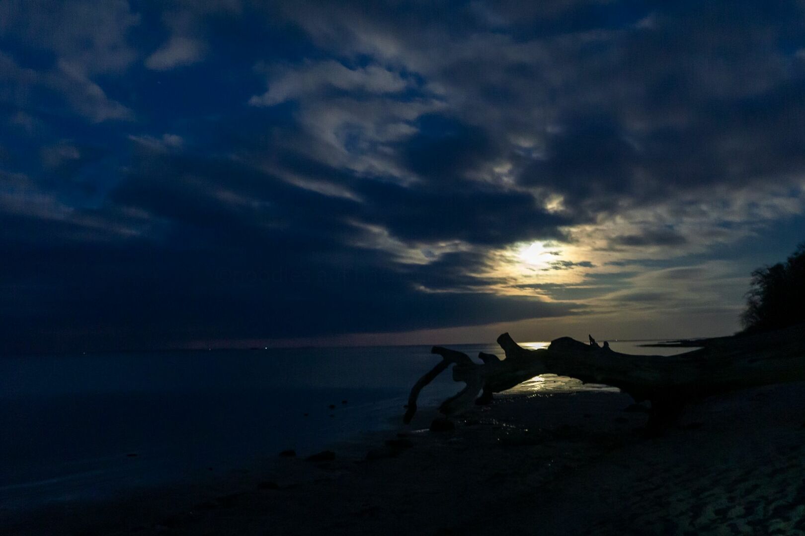 Heute hatten wir den hellsten Vollmond des Jahres, leider nicht ganz ohne Wolken. Ich war heute hier am Strand gegenüber von Rügen, wo einiges an alten Bäume am Strand liegt, die durch Stürme entwurzelt wurden