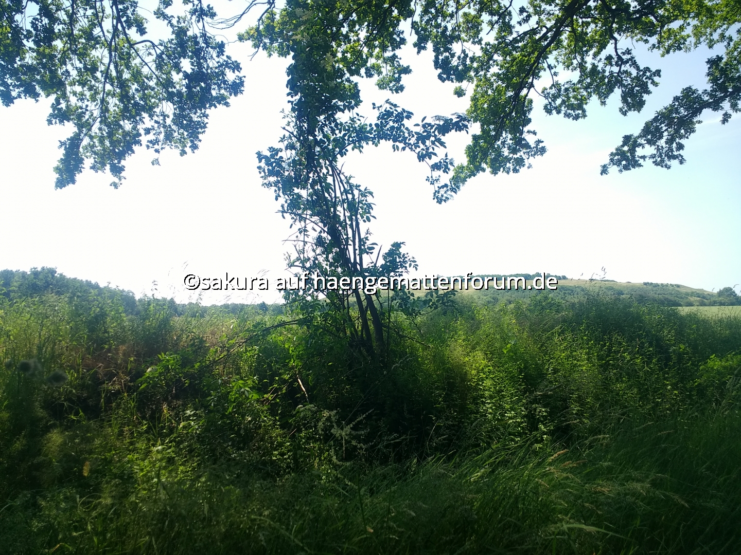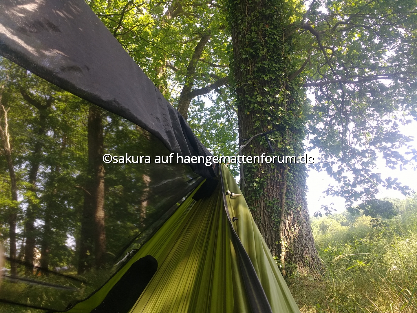 Hänge also an einem südlichen, schattigen und recht offenem Waldrand. Offen weil die kühlende Brise immer wieder gut durchgeht. Der Ausblick ist auch nett.