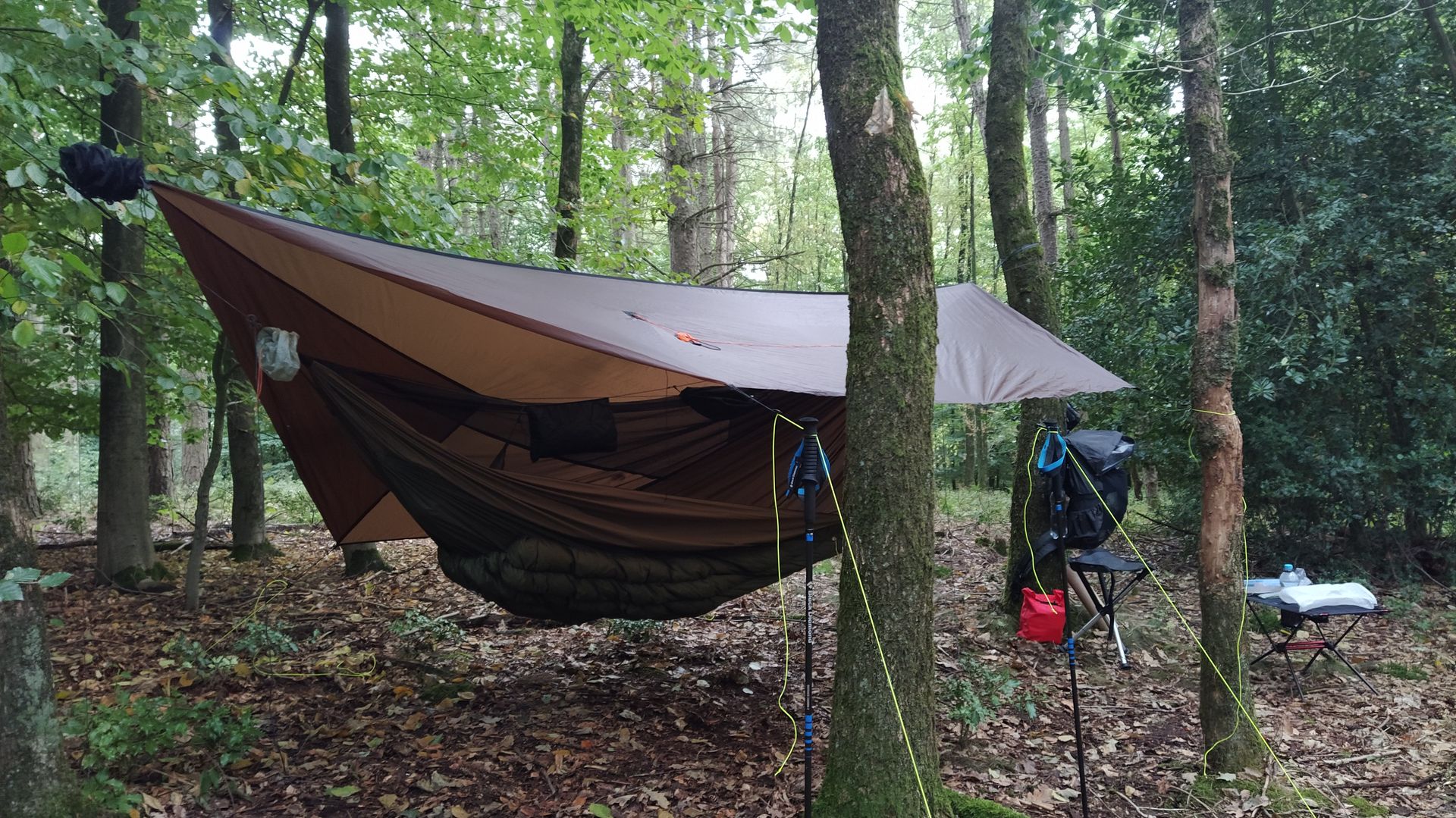 Na weil das Tarp dazu gedacht ist, Matte und Quilts trockenzuhalten. Wie es das macht, ist seine Sache.