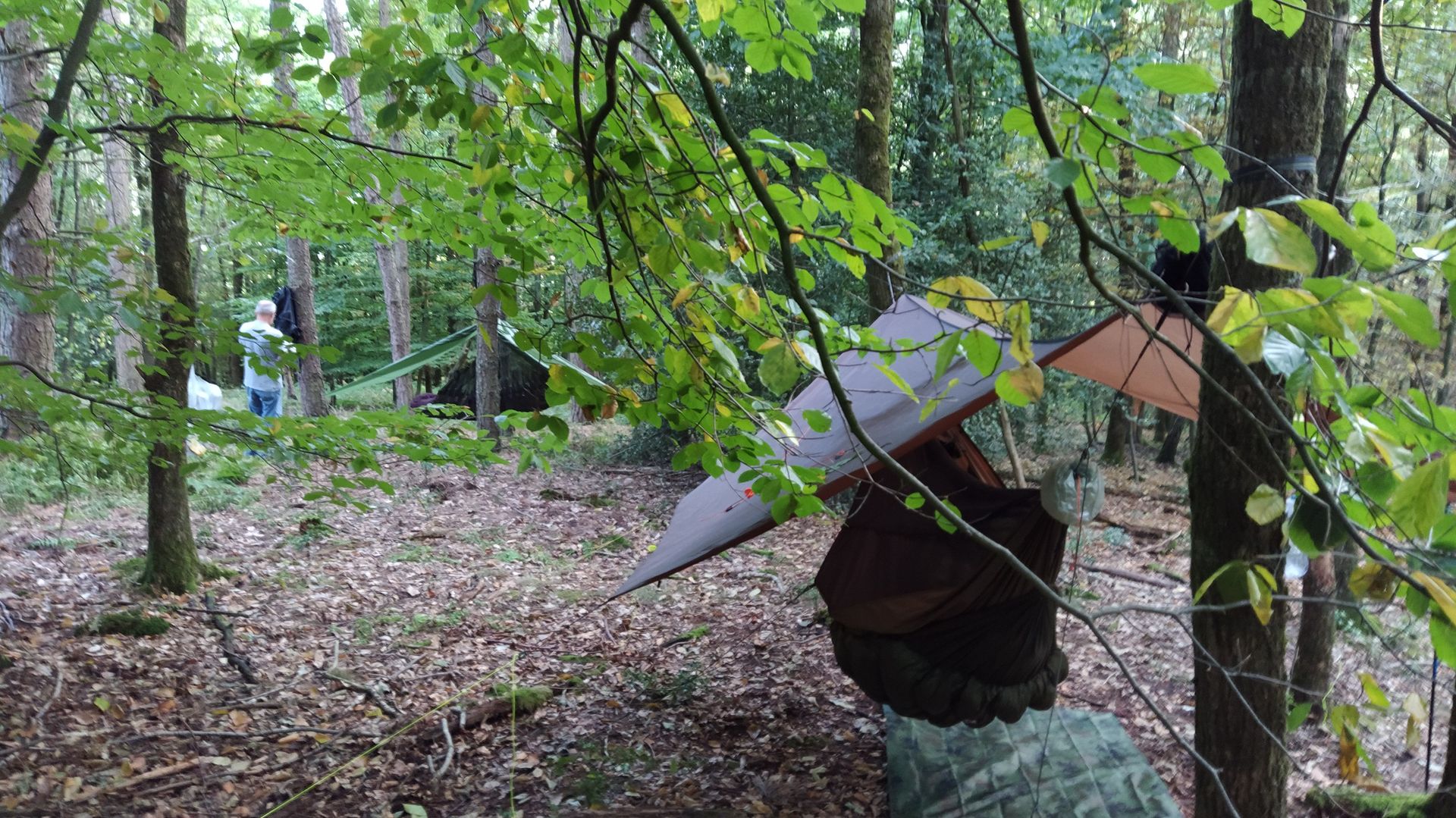 Als Schweizer weiss ich, dass es in den Bergen kälter ist als im Tal (ausser bei einer Inversionslage). Dein Tarp hängt weiter oben als die Hängematte und dort ist es folglich kälter. Deshalb kondensiert die Feuchtigkeit am Tarp und nicht weiter unten am (leicht von dir geheizten) Quilt.