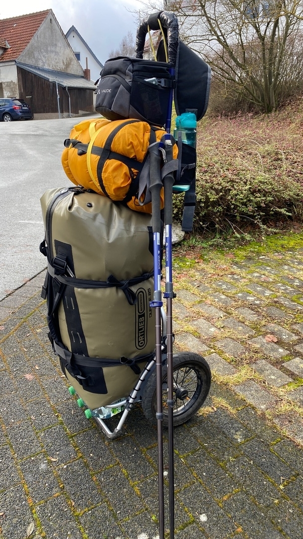 Los gings am 28.12 mit neu ausgerüstetem Wanderwagen auf dem Hermannshöhen Weg.