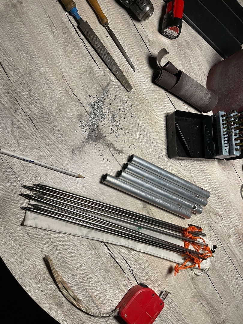 Die hier ist ein einfacher Schlauch aus ca. 25cm breitem Netzstoff incl. Nahtzugabe und passt locker um mein 260cm breites Dcf Tarp. Viel Spaß beim basteln