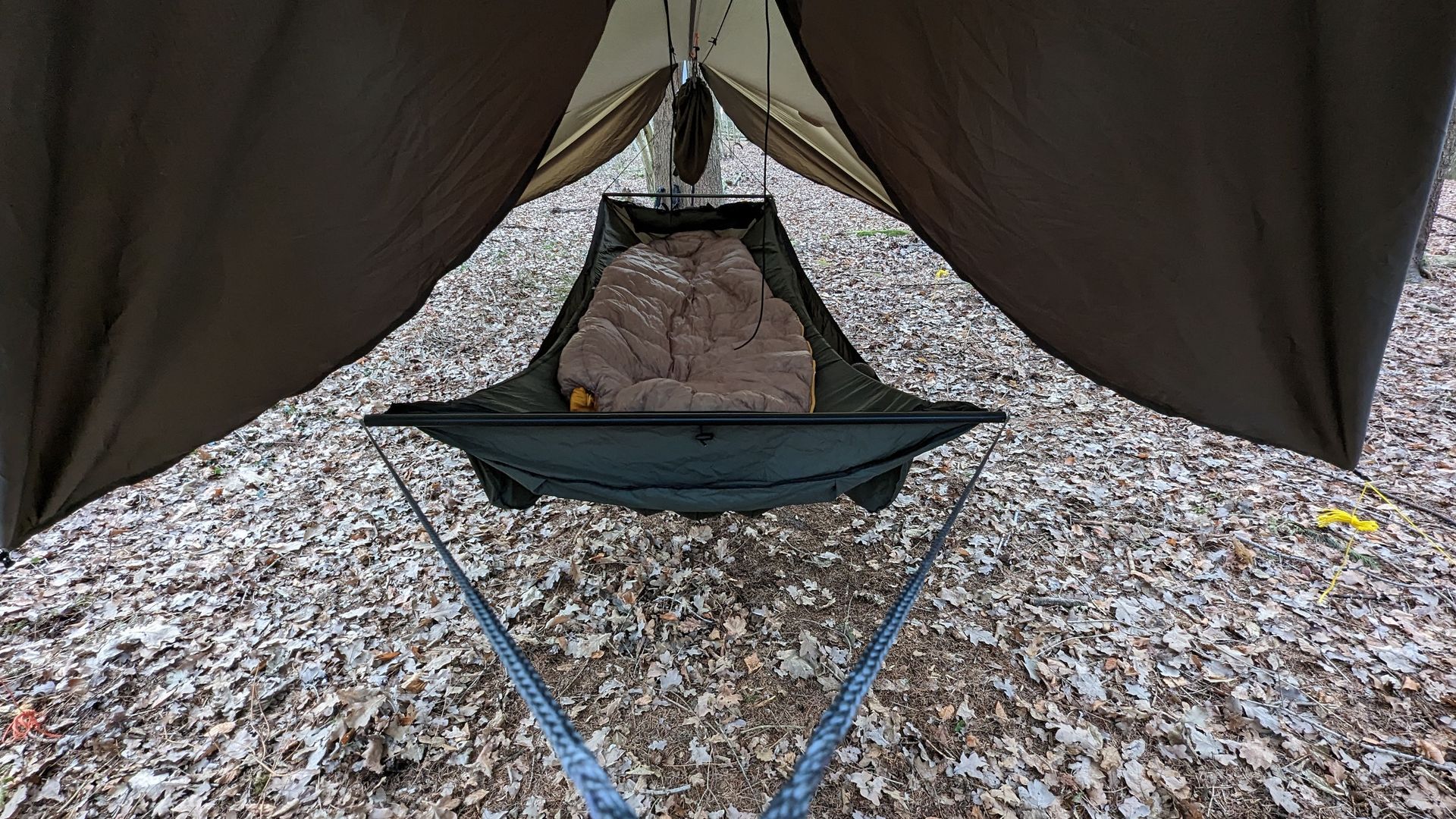 Der Hang-Wald war irgendwo in Tschechien östlich der Elbe. Der Bereich der Sächsischen Schweiz selbst scheint zum Hängen eher nicht geeignet, da entweder die Bäume tot, oder der NP im Weg ist (meist beides). Dort war ich in den Boofen mit der Isomatte unterwegs.
