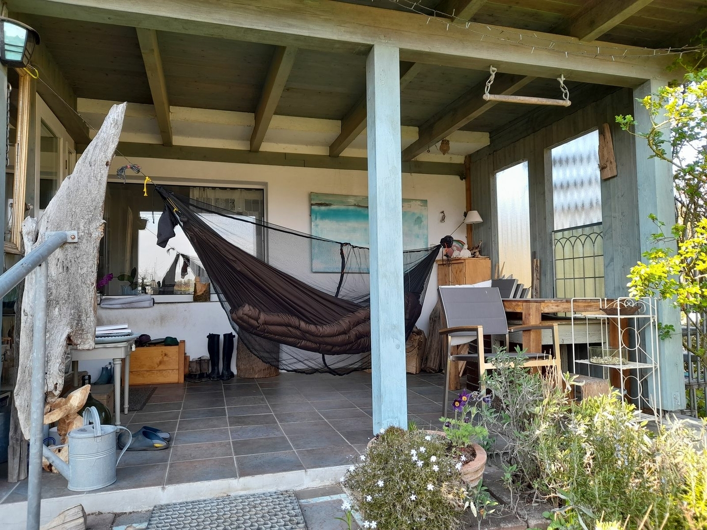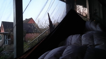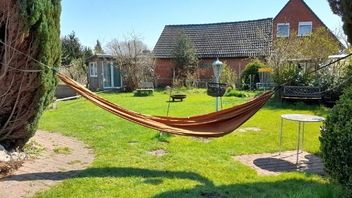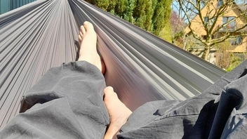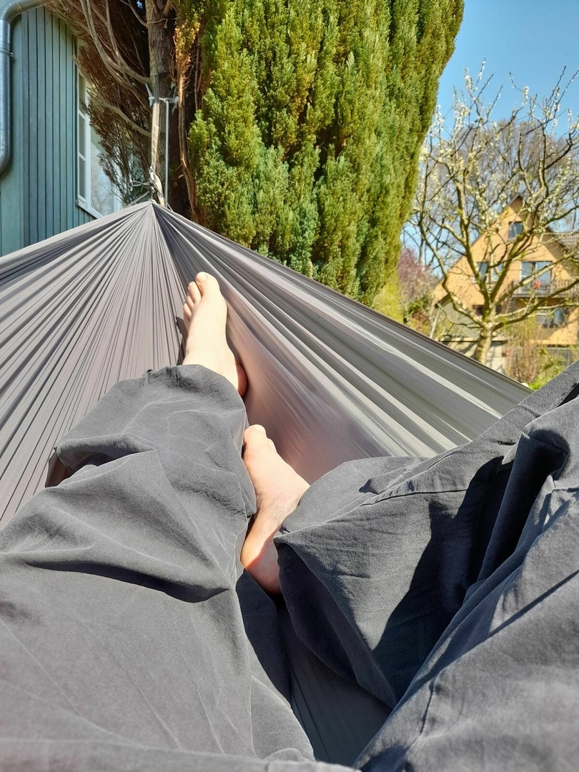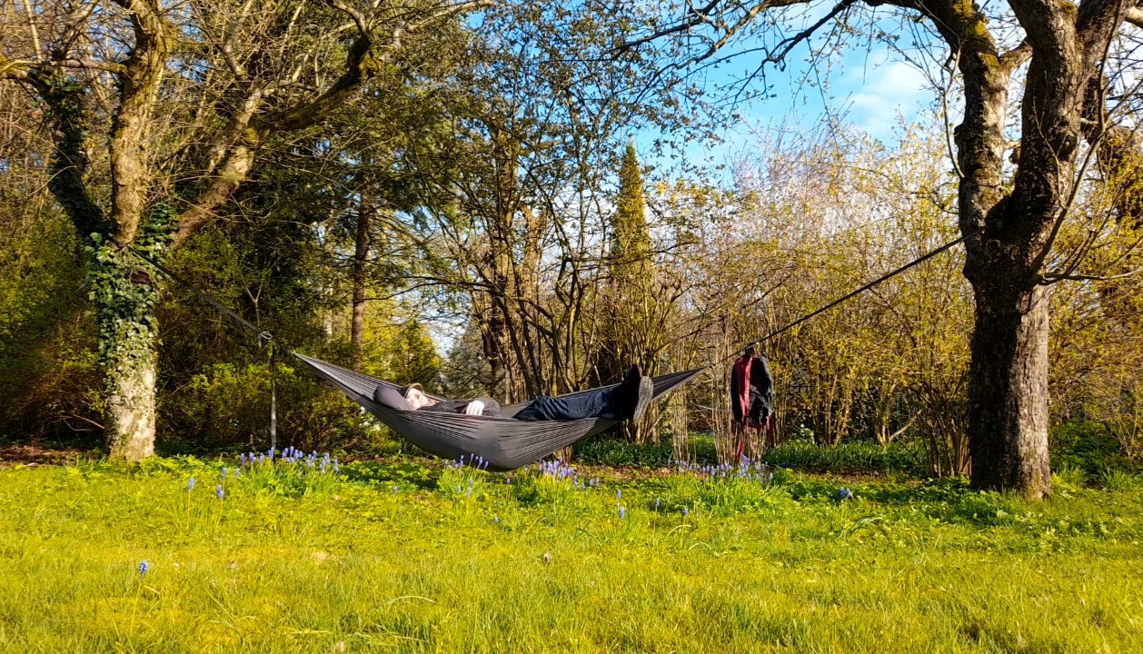 heute mal die grosse Decathlon zwischen meine Gartenbäume gehängt.