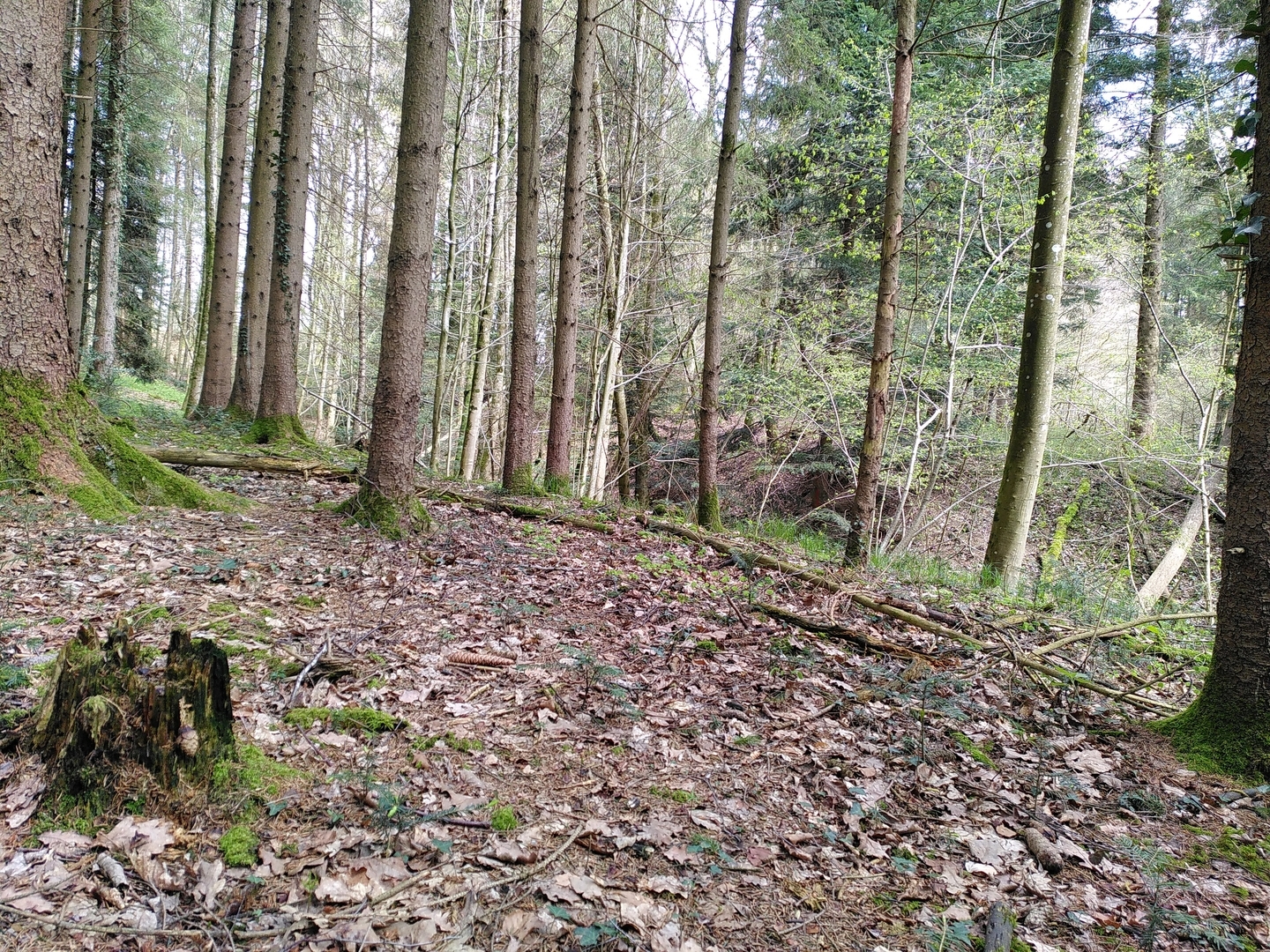 Blickschulung Hängeplätze. Jetzt, wo das Grünzeug noch nicht sprießt, konnte ich eine Menge Wildtierpfade entdecken.