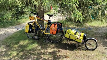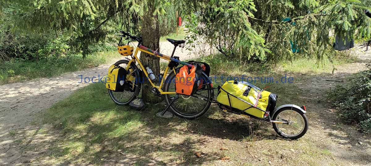 Zurück heute mit all dem Kram und Anhänger das zweite mal die Steigung hoch war dann doch etwas anstrengend und ich musste zwischendurch kurz verschnaufen.