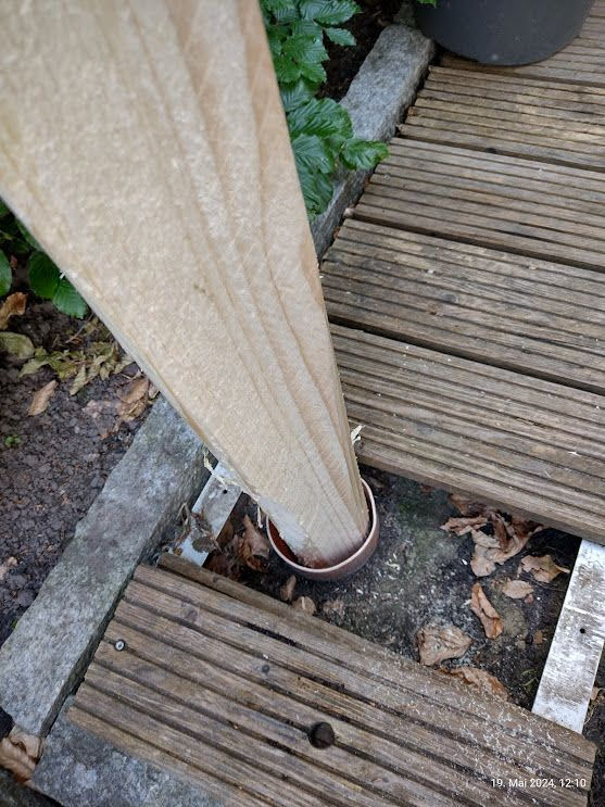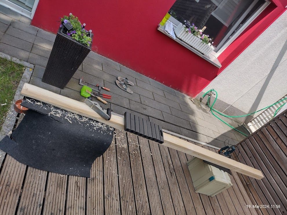 Da dieses Vierkantholz dieses Mal einer besseren Dimension entspricht und so nicht ganz gewillt war in das einbetonierte HT Ruhr zu gleiten, war etwas mehr Arbeit angesagt.