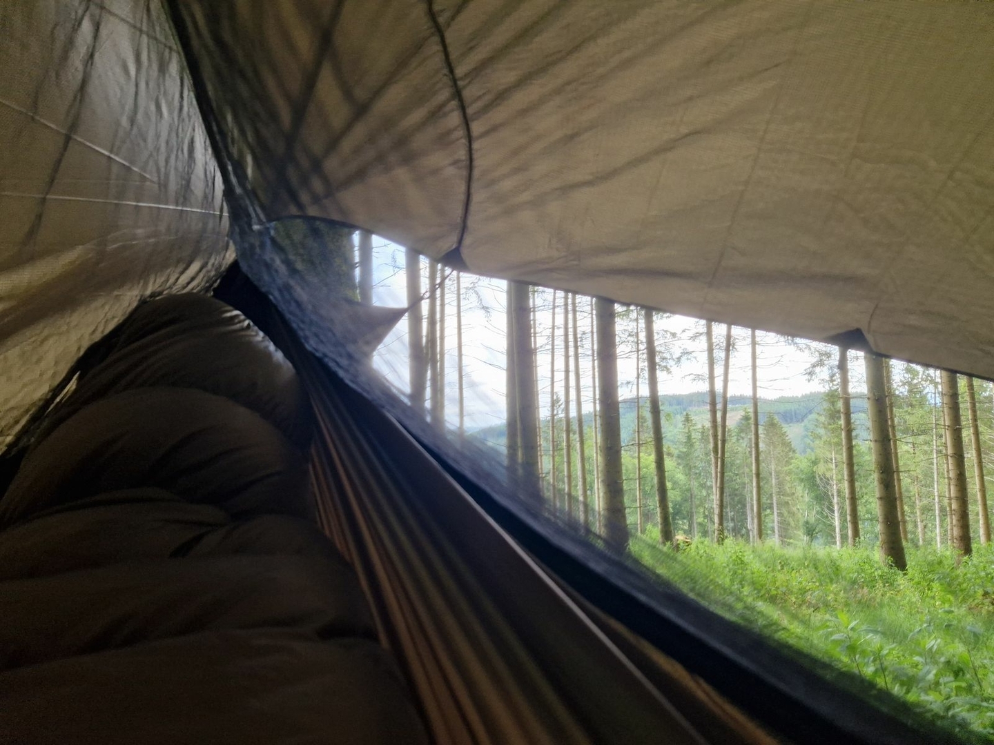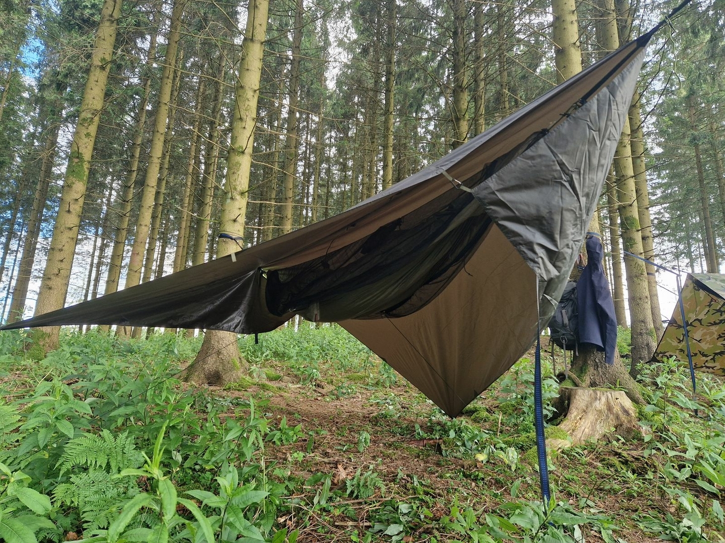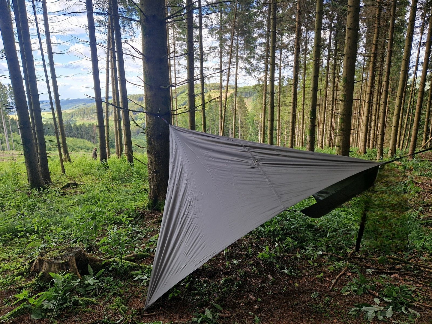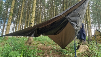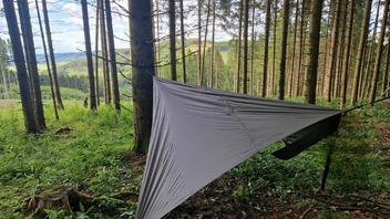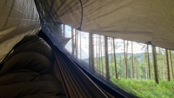 Habe heute die Standardtarpaufhängung vom Nebula Hex Tarp und die Tie Outs von der Onewind Zipper 11ft gewichtsoptimiert.