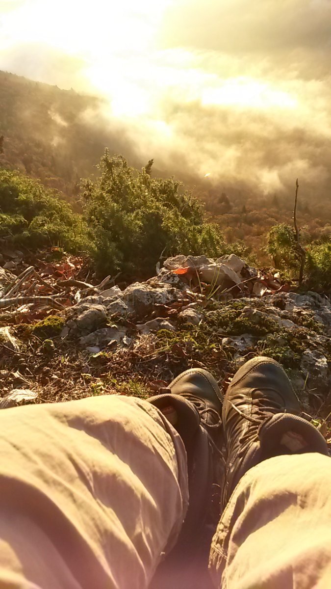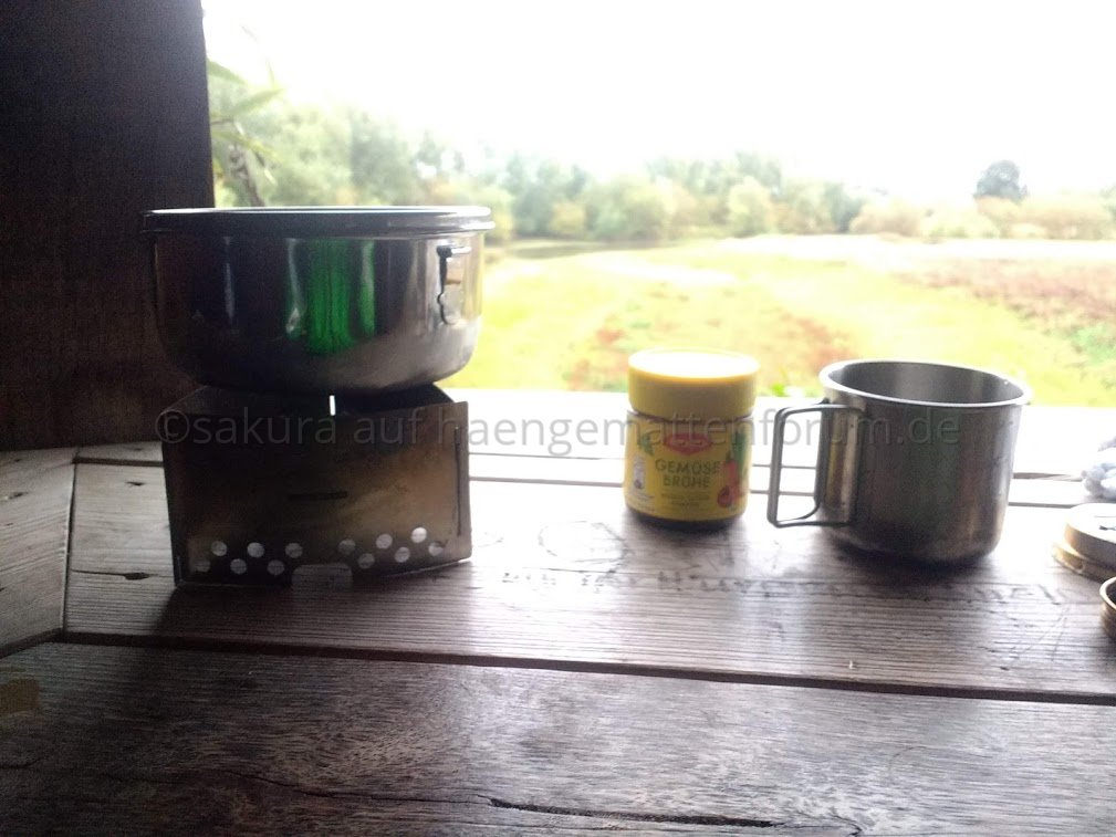 In der Hütte angekommen gab es eine heiße Instantbrühe, ein wenig blöd in die Natur gucken und dann wider weiter. Vorab wurde dann aber doch noch die nasse Buxe ausgezogen und verstaut sowie final die Regenhose angezogen. Gute Entscheidung.
