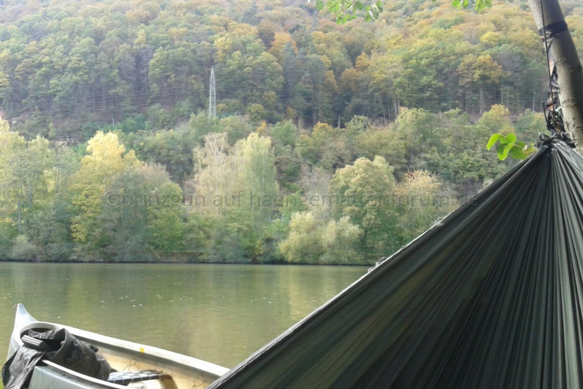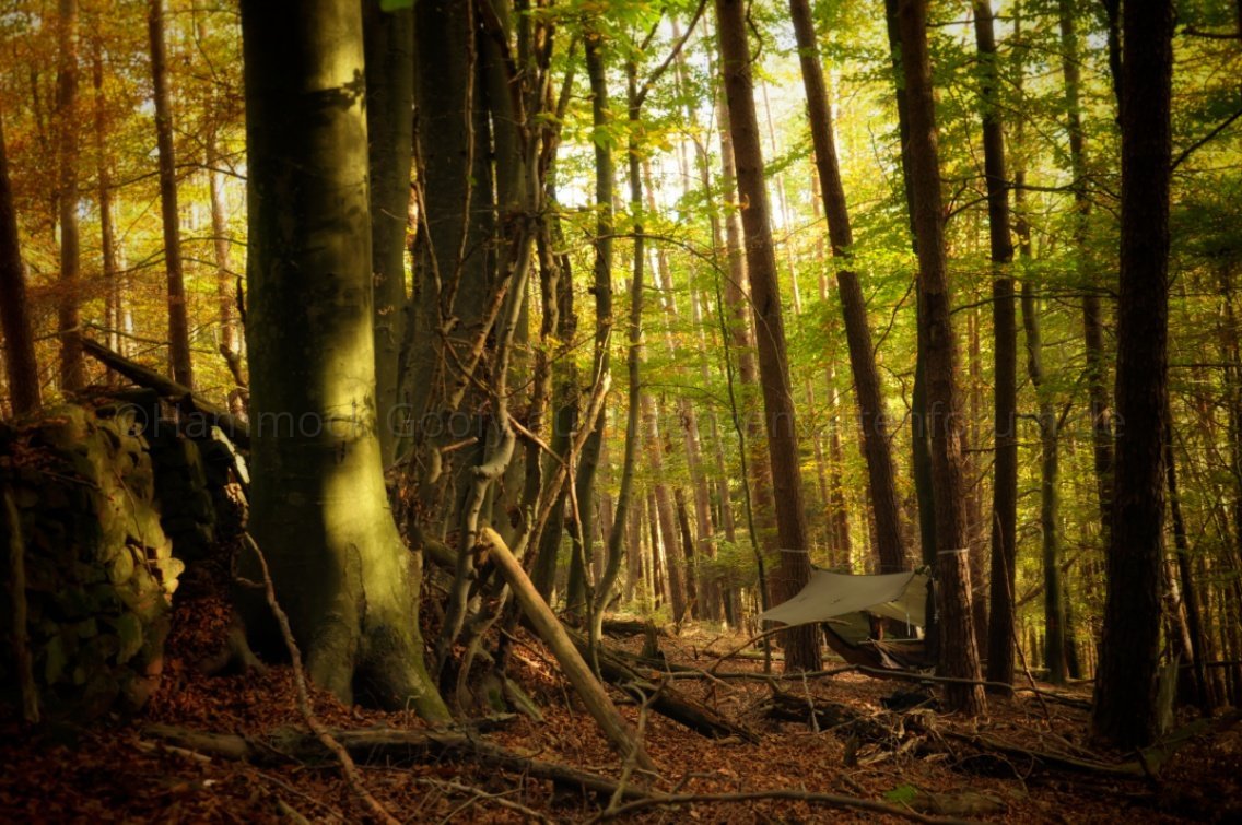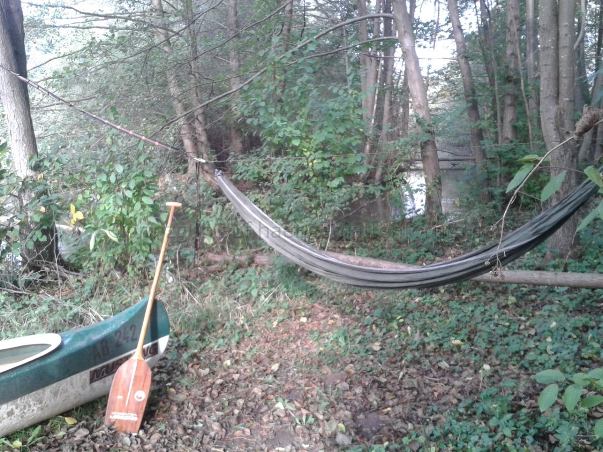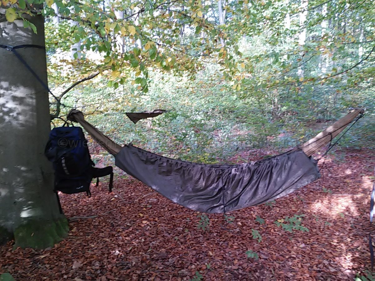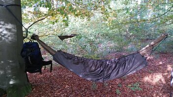 Es war noch hell, 17:00 etwa und ich hatte mich schon mal zum ausruhen und zur Probe hingelegt. Weil es recht windig war auch den oberen Snugpak schön über mich. Nach ein paar Minuten friedlichen dösens Motorenlärm. "Nun" dachte ich " da werden irgendwelche Jungs mit dem Mopped auf dem Feldweg rumfahren" der Waldrand war in Hörweite, aber da ist sonst nix, nur ein kleiner Feldweg. Aber das kam immer näher, und dann kamen 6 Crossmotoräder, richtige Crossräder, ohne Anmeldung oder so. durch den Wald und direkt an mir vorbei. Und die waren so konzentriert am gucken dass die mich nicht gesehen haben. Bis auf Nr. vier, der ist mit der Karre weggerutscht und keine 3m vor der Hängematte zu liegen gekommen. Der hat mich angeglotzt wie ich da eingekuschelt hänge als wär ich Wildschütz Klostermann persönlich :D