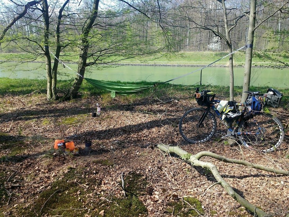 Was kann ich von der ersten Hängemattennacht in diesem Jahr und mit dem neuen Schlafsack-Poncholiner Kombi erzählen? Ja soweit so gut. An eine komplette Nacht in der Hängematte werd ich mich als Seasonhänger wohl erstmal wider gewöhnen müssen? Könnte aber auch an dem Espresso von der gestrigen Radtour gelegen haben. Denn so richtig fix bin ich nicht in den Schlaf gekommen.