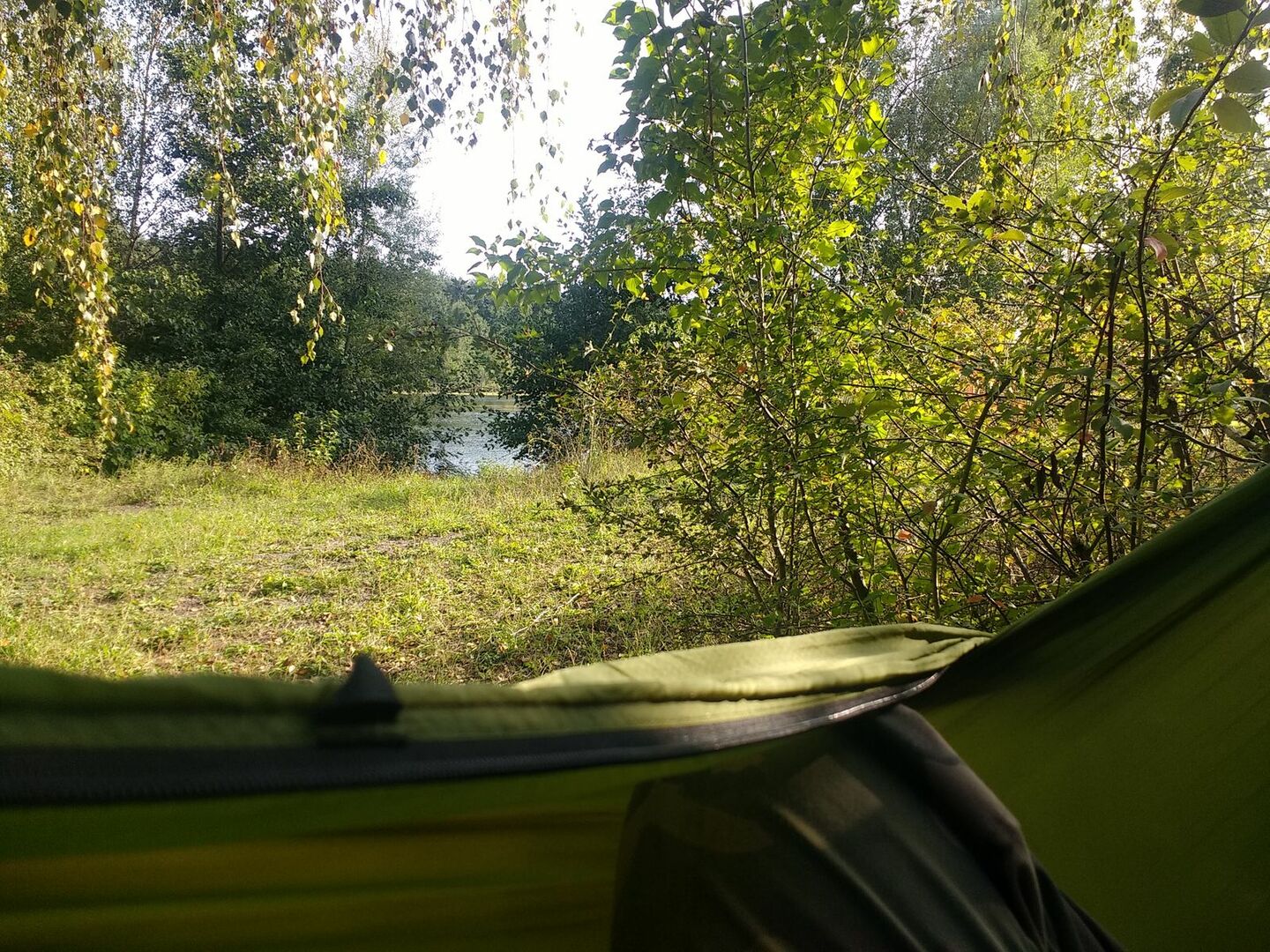 Ein paar Meter weiter ist in einem Loch (Tagebruch nennt man das hier im Pott) wo ein netter und relativ unberührter See ist. Von meinem Lagerplatz aus......hab ich zwar eine direkte Sichtachse...