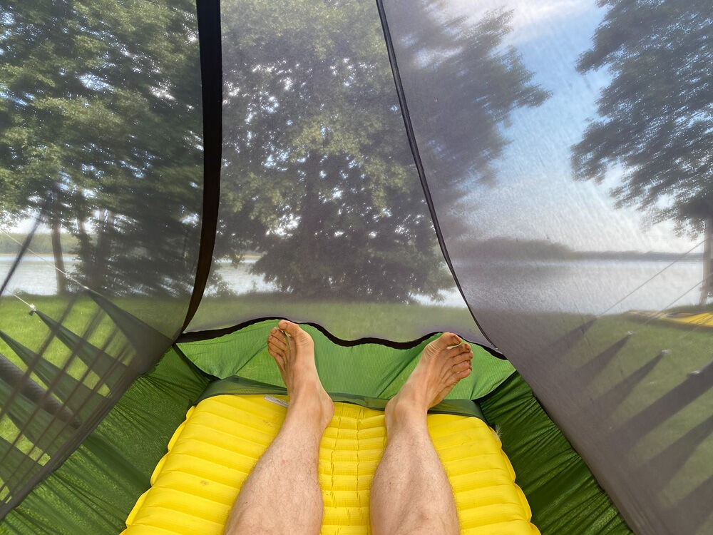 Da ich wusste, dass es auf der Biwakwiese keine Bäume gibt, habe ich den Carbon Tree mitgenommen und hatte auf dem freien Feld die Qual der Wahl.