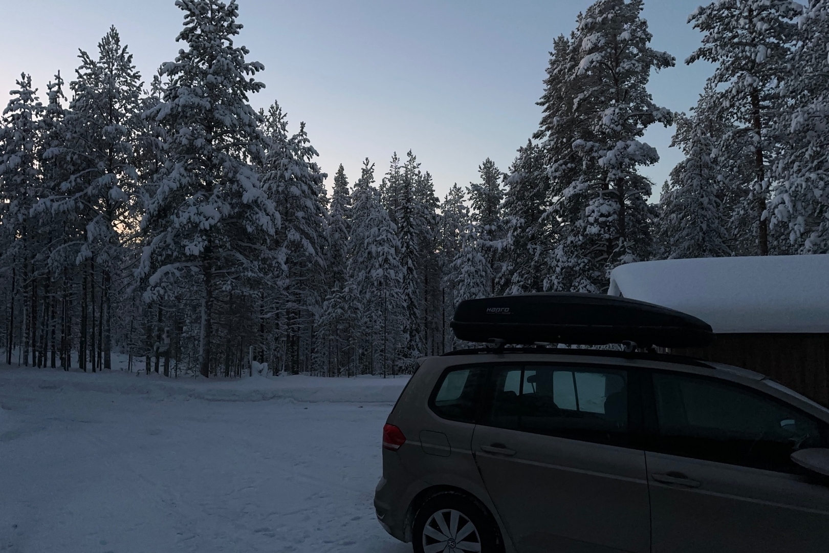 Gegen 15:30 Uhr ist der Himmel hier dann auch wieder komplett dunkel - zum Glück gleicht der Schnee das etwas aus.