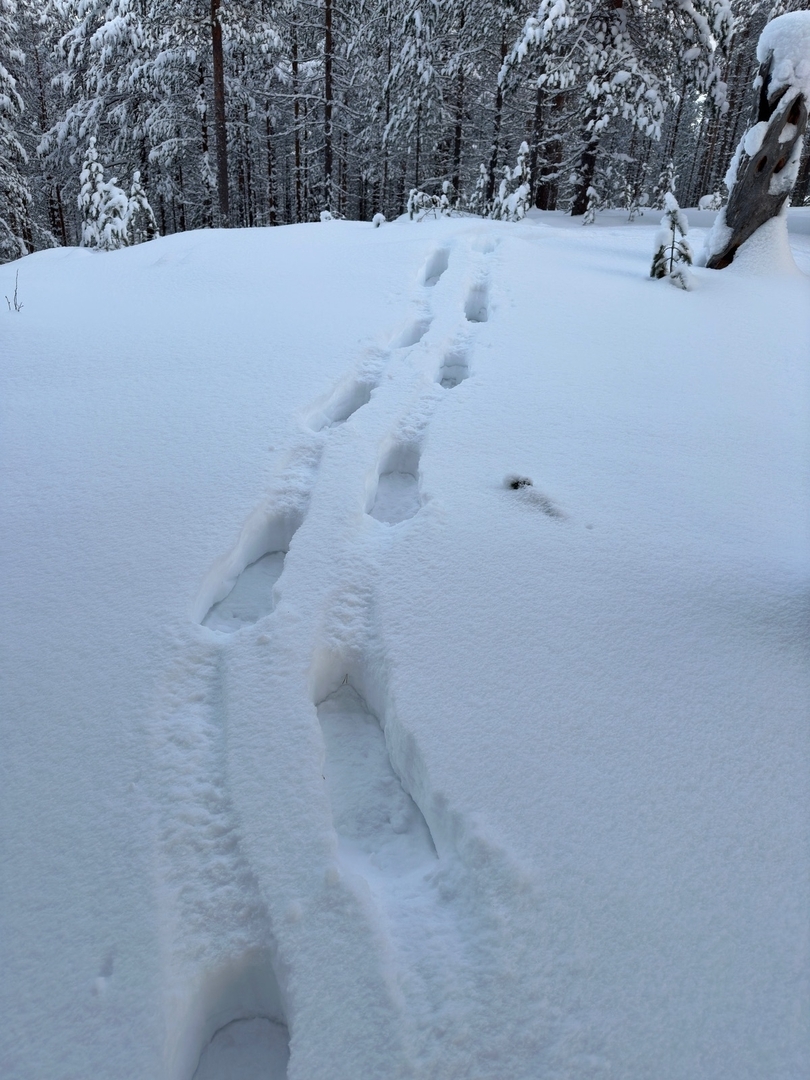 Als Anhaltspunkt: das sind keine Fußabdrücke, sondern Schneeschuhabdrücke.