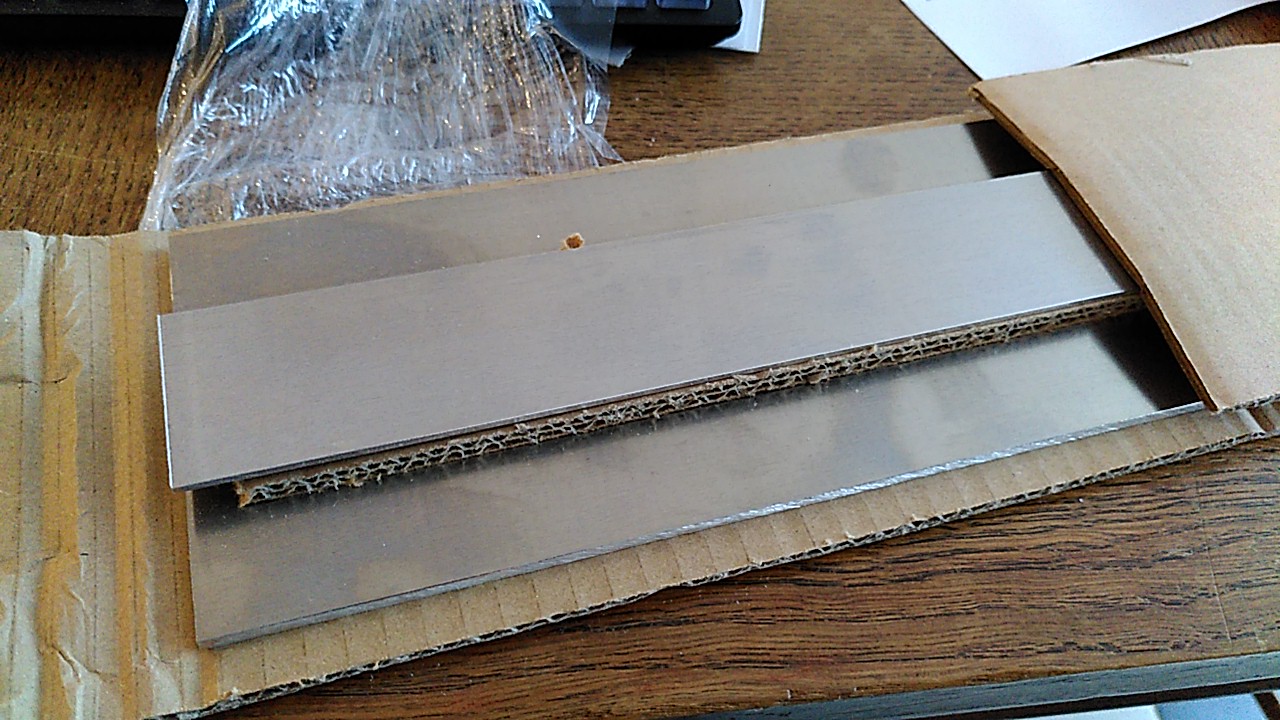 7075 Alu T6 gehärtet ... Um ein paar Gurtschnallen- und Tarpabspannungen-Experimente zu schnitzen. 4 mm für Gurtschnallen, vielleicht auch mal ne TurtleTie kopieren. 2 mm für Tarpabspannungen.