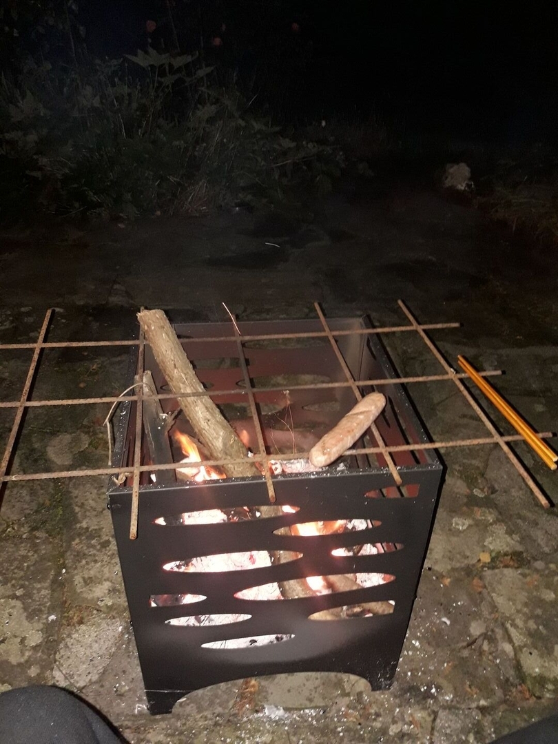 Ich wollte zum Wintertreffen vielleicht Stücke aus dem Stahlgitter flexen und darauf dann Asado-Fleisch befestigen und ans Lagerfeuer hängen, sofern ich einen Spieß in den Boden an der Feuerstelle bekomme. Man kann ja alles nehmen von Hühnchen bis zu Rippchen.