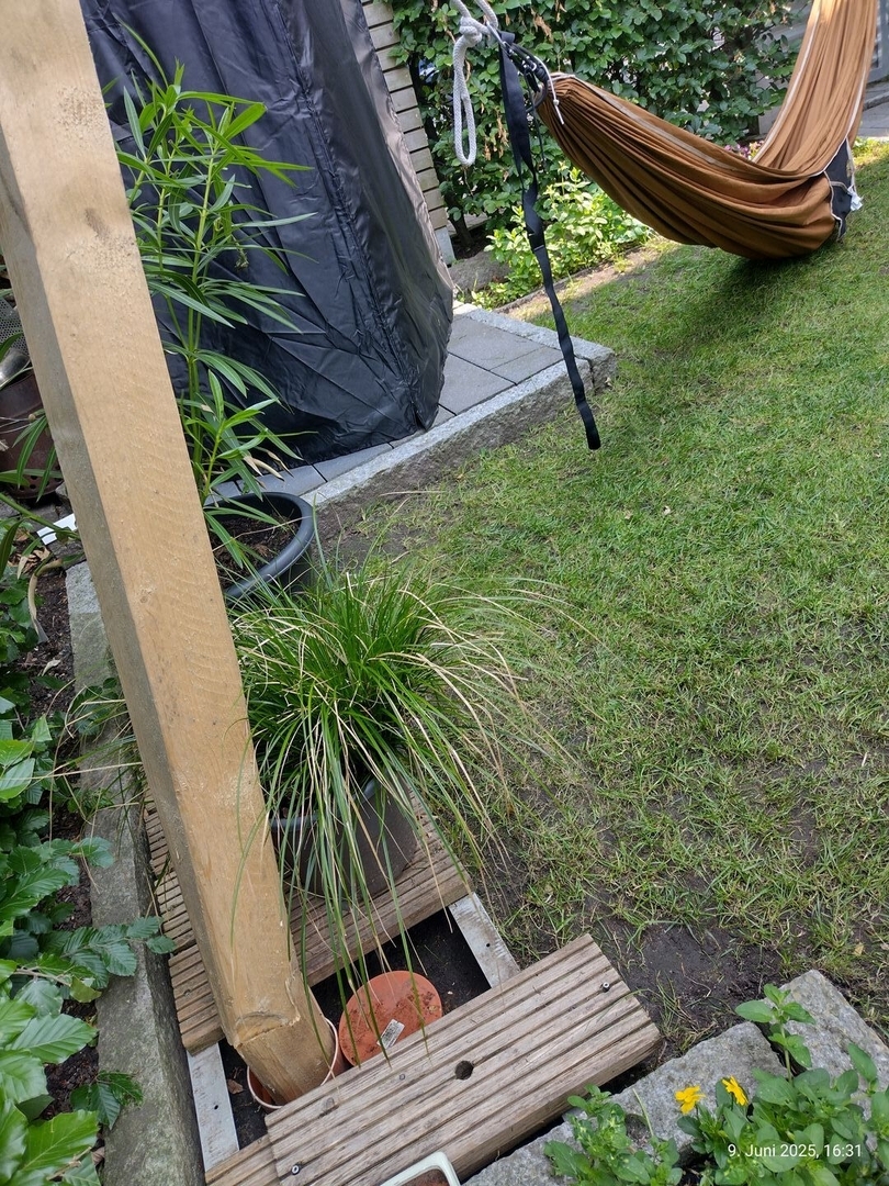Laut Wetterbericht hatte ich einen kurzen Zeitrahmen von 45min.bis es wieder anfing, dauerzuregnen. Sagte mir der Wetterbericht,nachdem ich das mobilnetz im Regen unter ein Baum eingefangen hatte,da vor ort ,ca 15m an der Hängematte kein Empfang gab.