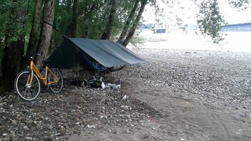 Hängematte aufgebaut und draußen geschlafen.