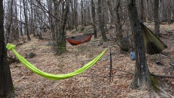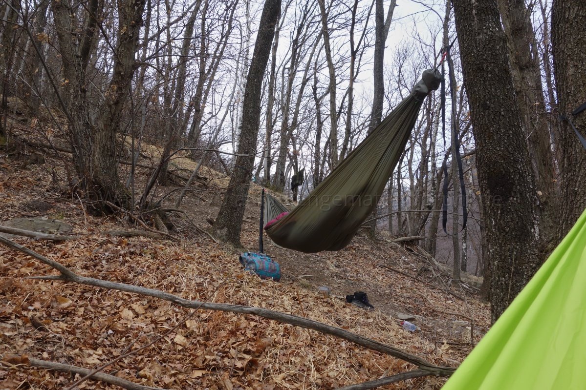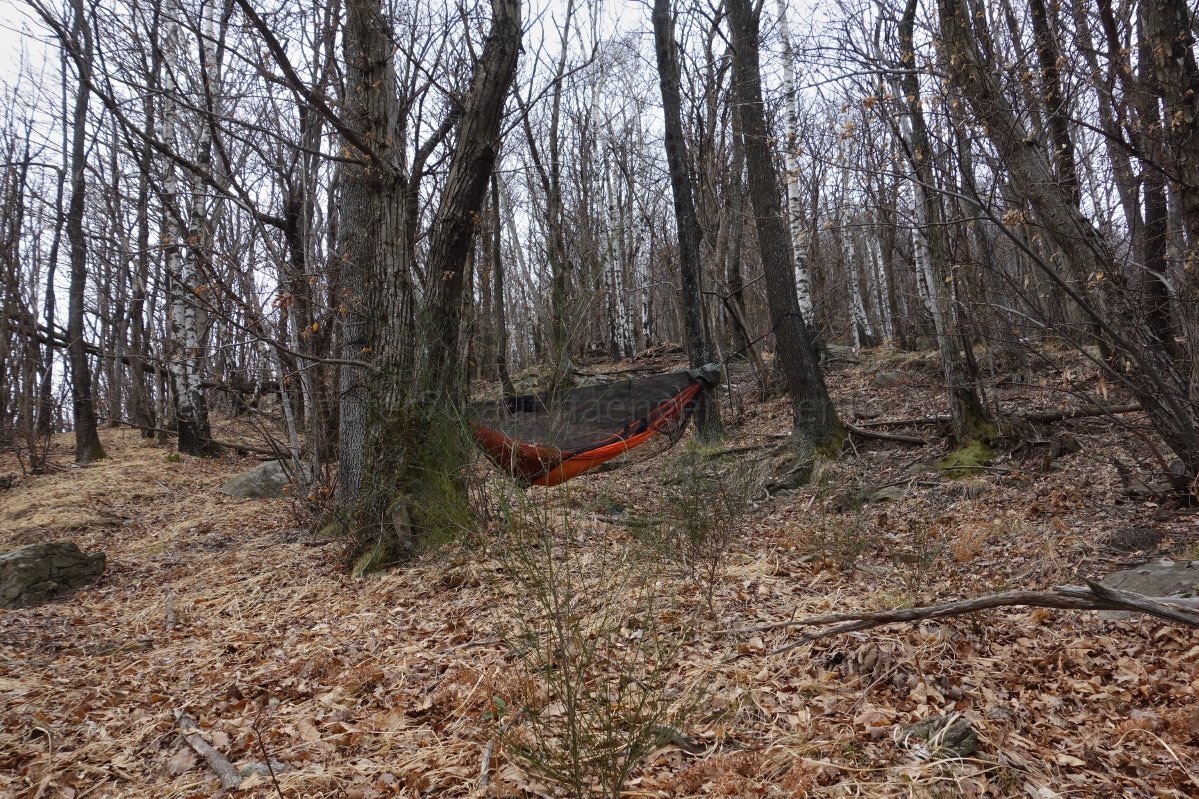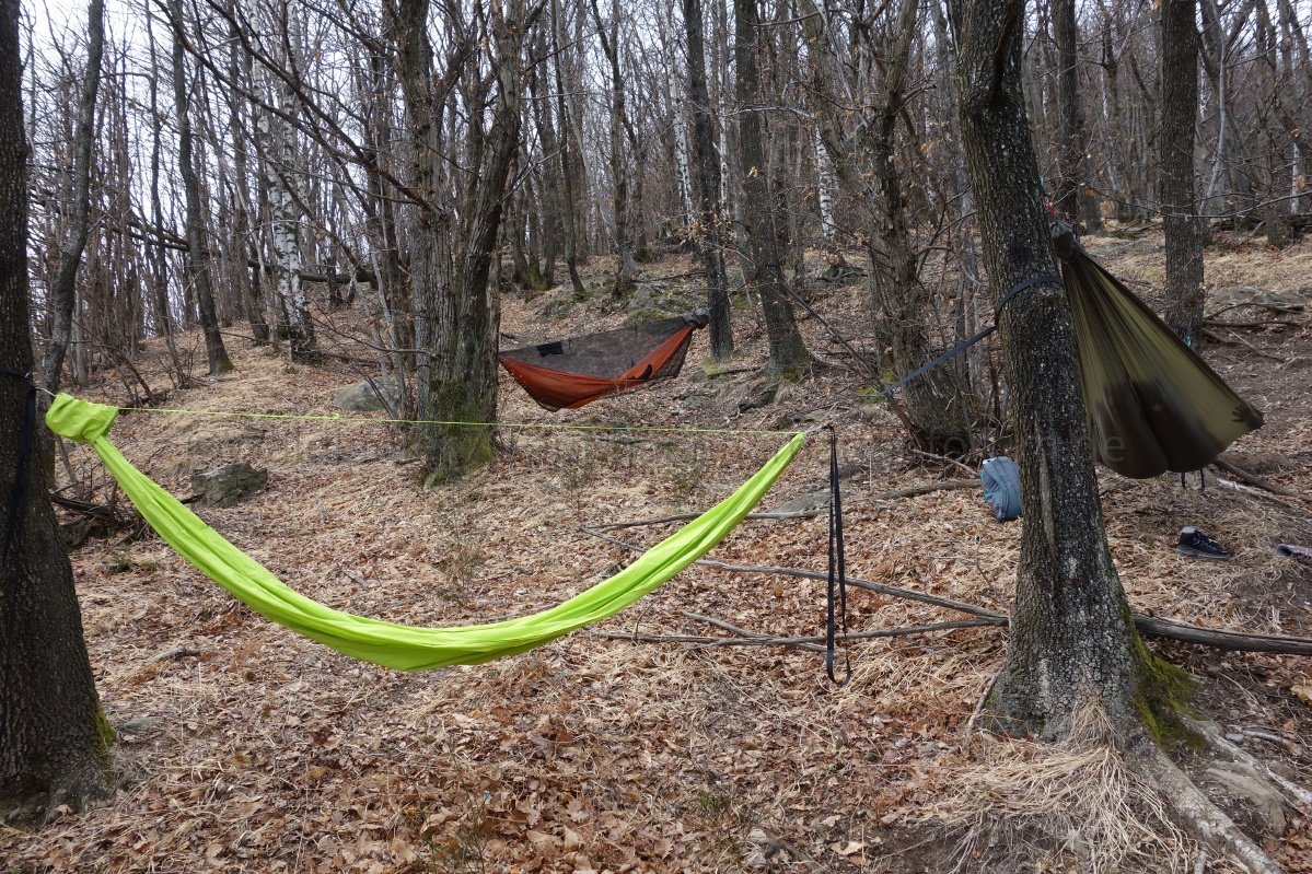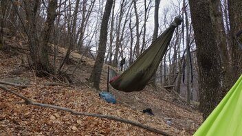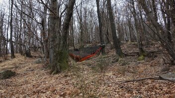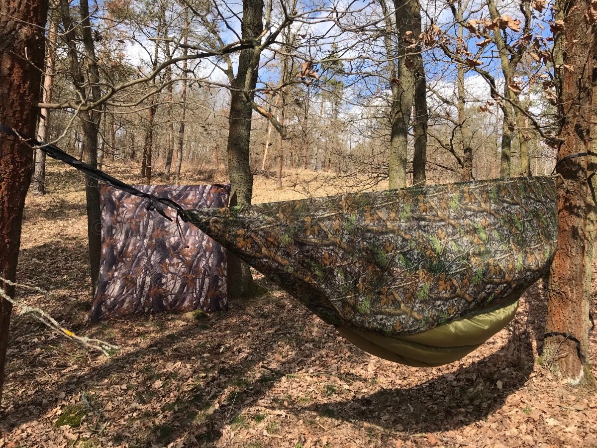 Bei dem Sonnenschein heute hätte ich wie alle Leute spazierengehen und das schöne Wetter genießen können. Stattdessen bin ich im Dienst der Hängemattenwissenschaft in den Wald gegangen und habe einen weiteren Praxistest der WhoopieHook-Venom-LoopAlien-Aufhängung durchgeführt.