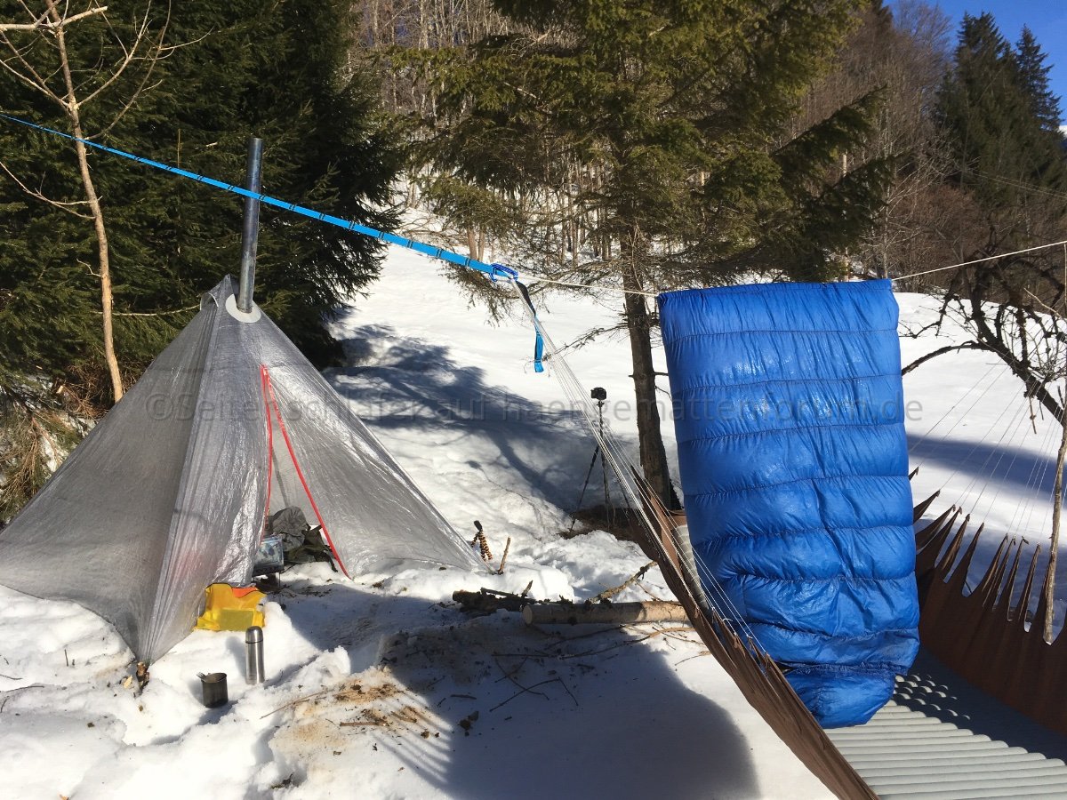 • ich probiere gerade ein cuben tarp als Sonnenschutz aus. Wenn du es doppelt gelegt abspannst, und das reicht ja als Schattenspender völlig aus, funktioniert es einwandfrei und beschattet dich ausreichend und das unter kanarischer Sonne8). Und nebenbei macht es gerade noch den Sturmtest bei heftigsten Windböen. Und die Abspannung hält vorbildlich.