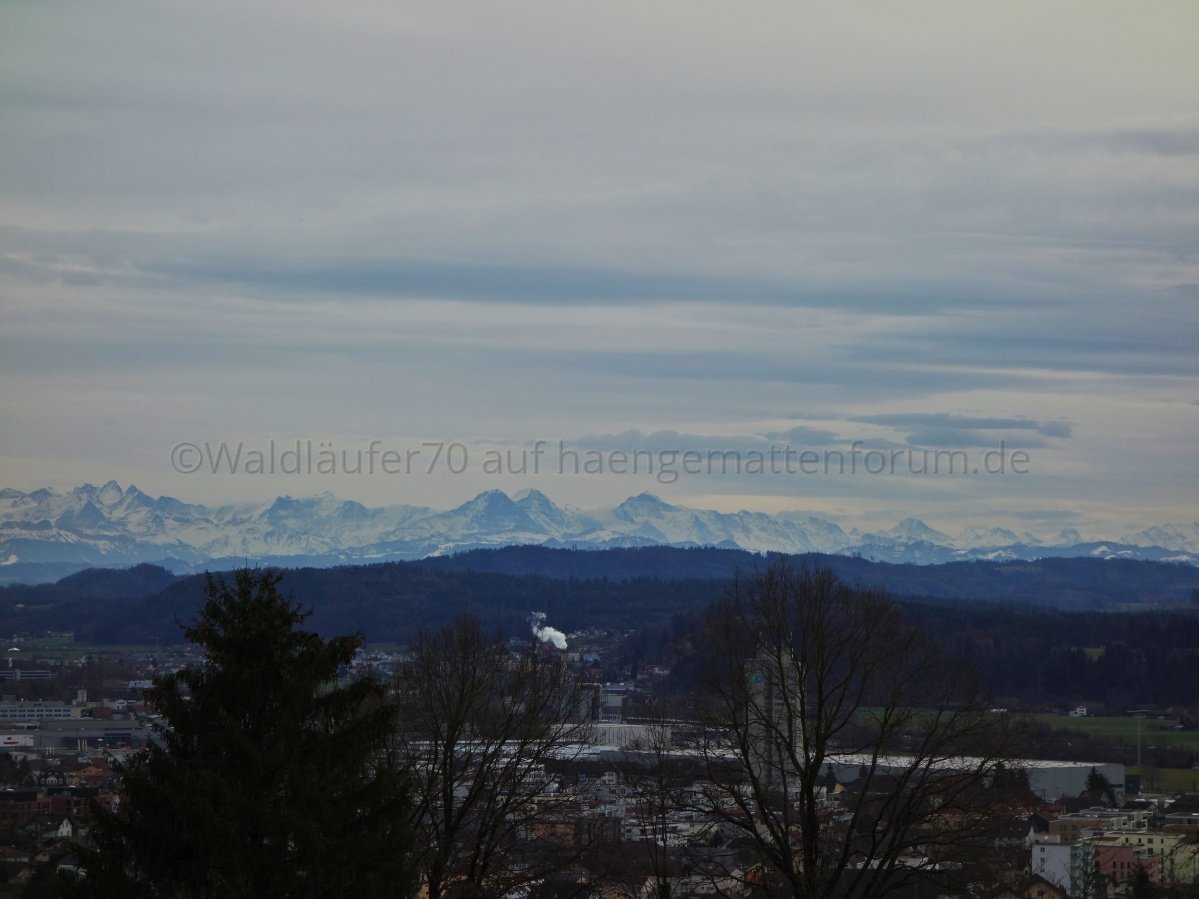 Überrascht hat mich heute die unglaublich klare Sicht auf die Alpen (Wetterumschwung). Schon von Olten aus waren Eiger und Mönch zu sehen und schienen greifbar nahe: