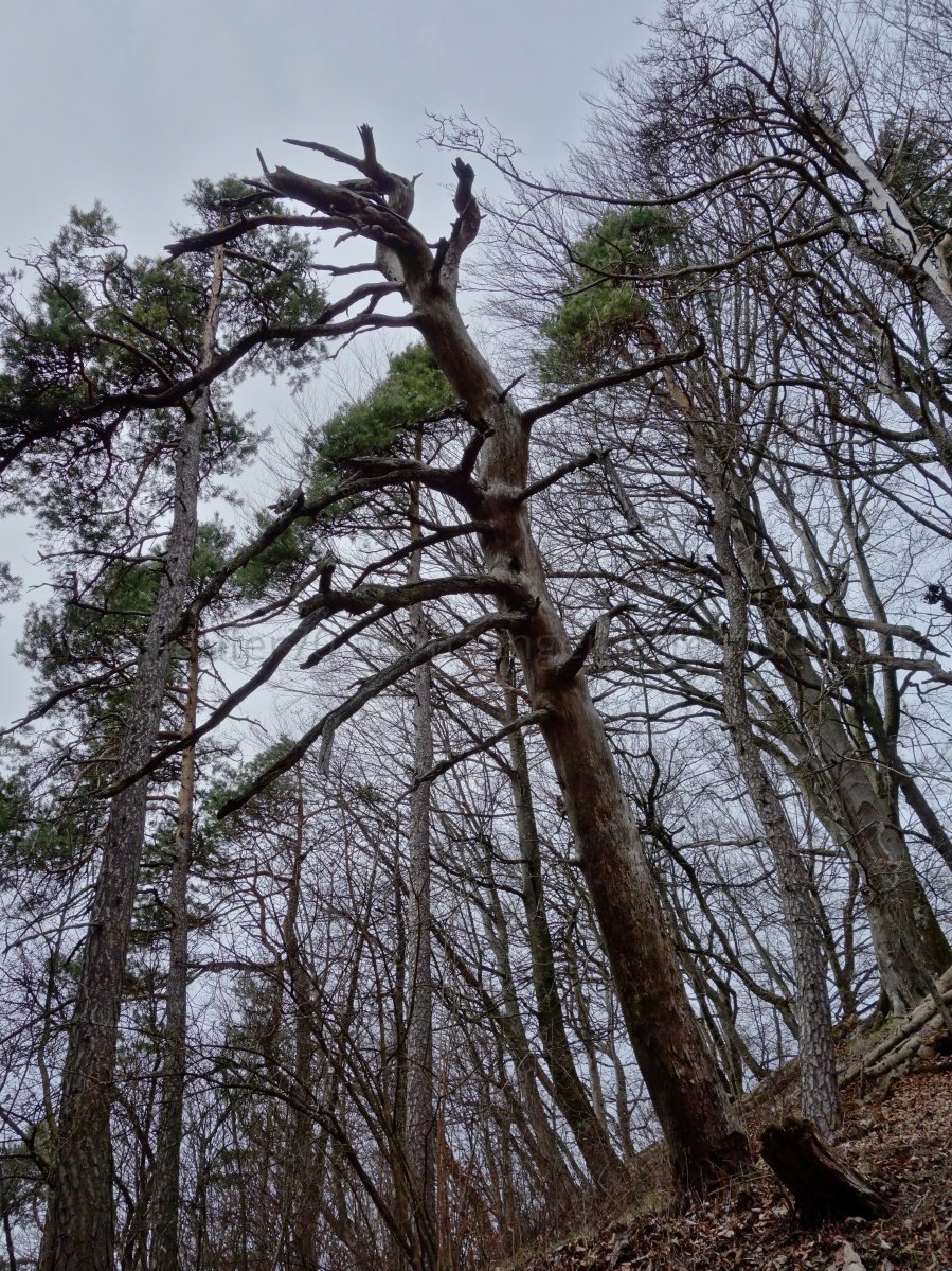 Die Gefahr, dass der genau in dem Moment umfällt, in dem man darunter liegt, halte ich zwar für verschwindend klein (bei einer kurzen Pause und ohne jeglichen Wind). Dennoch halte ich für mich wieder einmal fest: «Überprüfe vor dem Aufbau der Hängematte, ob dürre Äste über dir hängen oder ein Totständer in deiner unmittelbaren Umgebung steht.»
