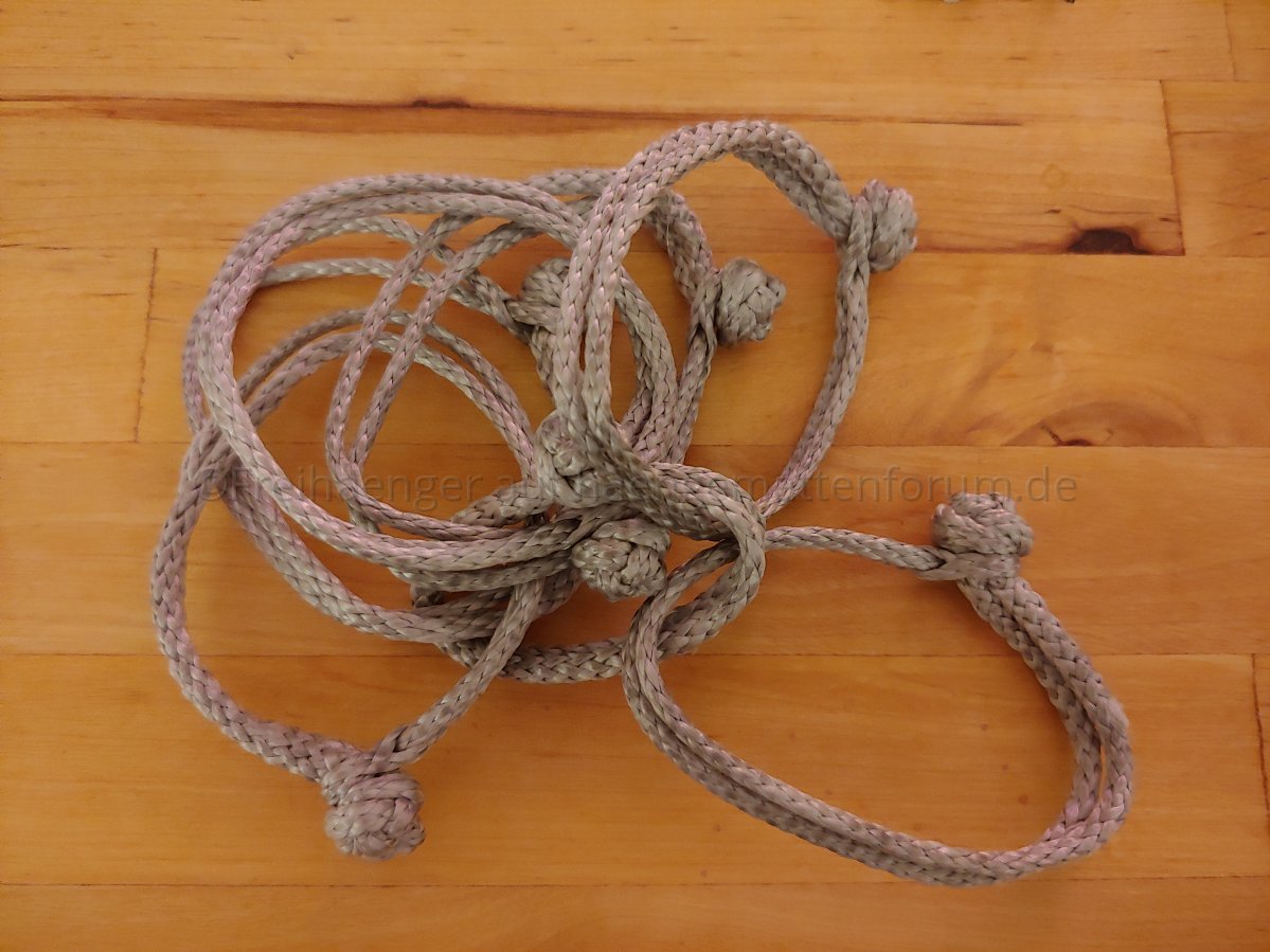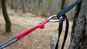 • Seit ich die Evo-Loops (auch von Jeff Myers) kennen gelernt habe, bin ich von den Soft-Schäkeln eher wieder weggekommen. Die Evo-Loops finde ich fast vielfältiger verwendbar. Sie funktionieren auch als Soft-Schäkel, aber vor allem mit mehrfachem Ankerstich als vielfältige Befestigungsmöglichkeit für Baumgurte und Hängematten.