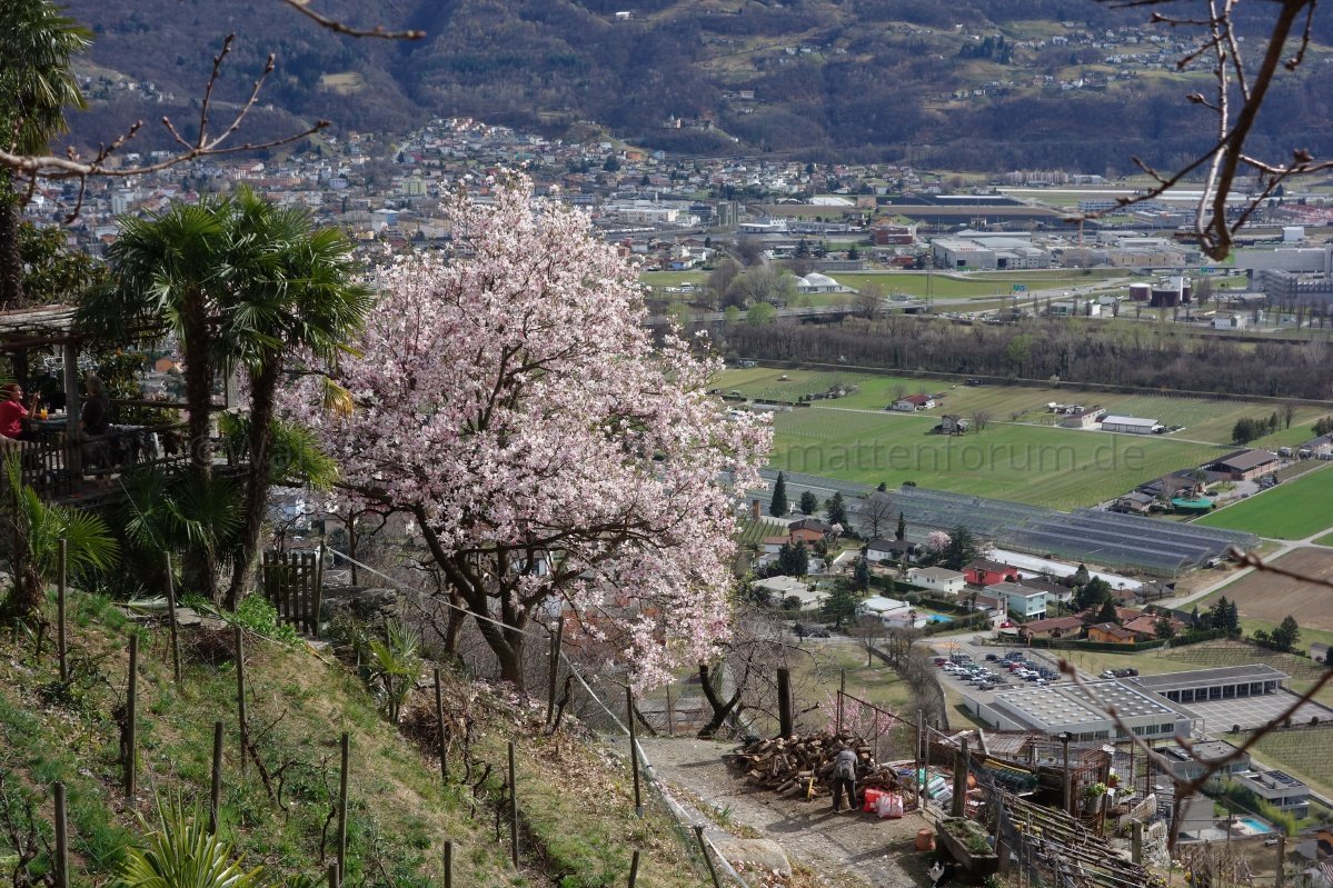 Der Frühling ist im Tessin schon weit. Im Tal blühen bereits die Kirschen und selbst die Magnolien zeigen sich von ihrer schönsten Seite. Auf den Berggipfeln liegt noch Schnee, während wir bei rund 23°C im lichten Kastanienwald die Sonne genossen: