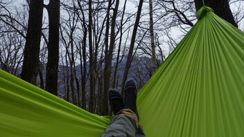 • Ich habe übers Wochenende im Tessin gemeinsam mit Freunden wundervolles Wetter genossen. Nach einer kleinen Wanderung über die «Ponte Tibetano Carasc» (270m lange Hängebrücke für Wanderer) haben wir eine Pause mit Hängematte gemacht. Ich habe für alle vier eine Hängematte mitgenommen, man denkt als Hänger ja sozial... Mein Patenkind und seine Mama wollten dann aber eine Matte teilen: