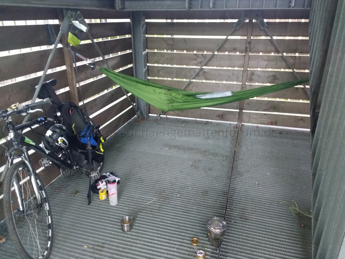 Vielleicht tausche ich das Bett ja noch gänzlich gegen die Hängematte ein. Manchmal ist es halt abends so, dass es mir leichter fällt, schlaftrunken ins Bett zu fallen, als mich vorsichtig in die Hängematte zu legen und Top- sowie Underquilt zu adjustieren.