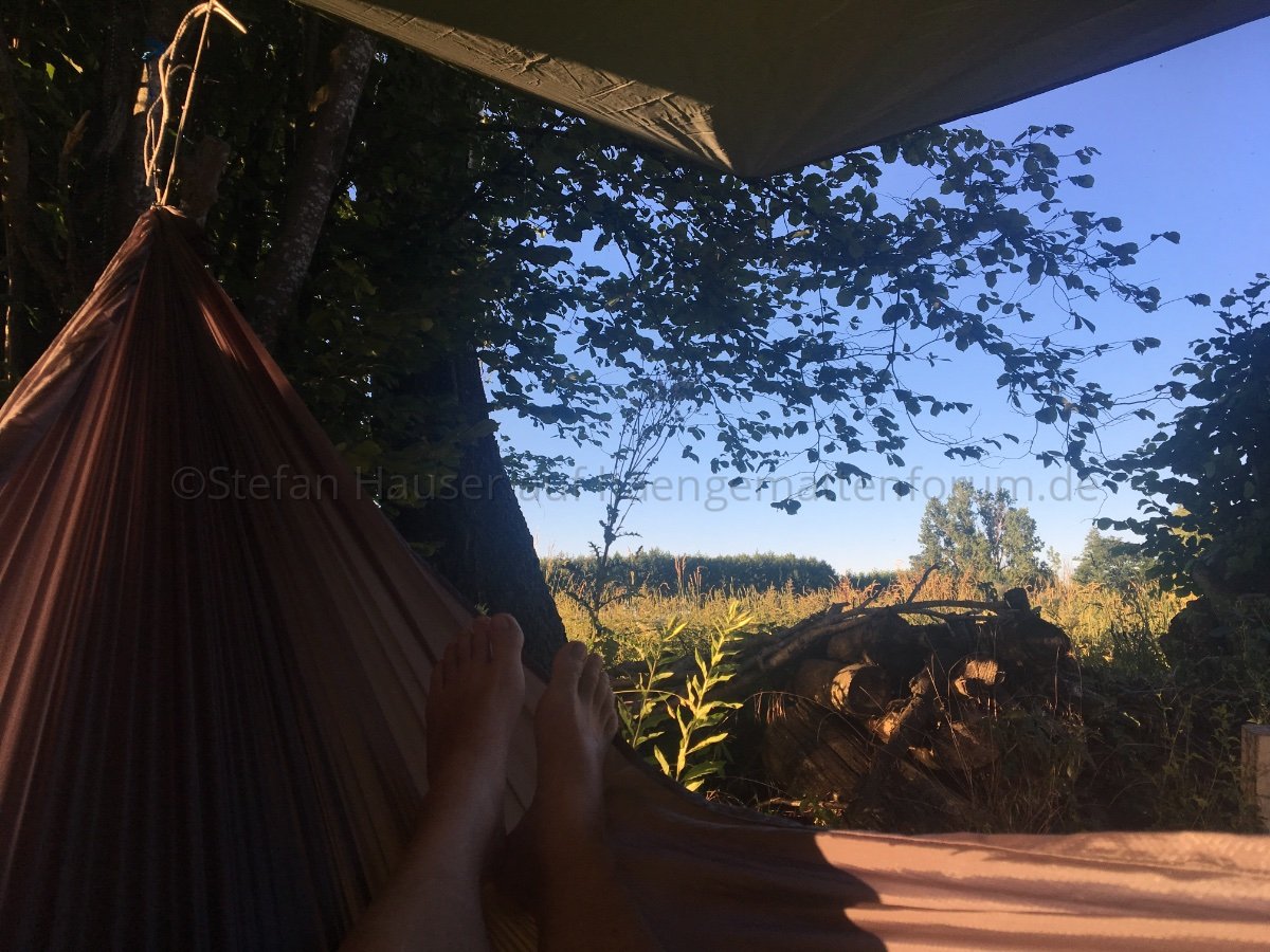 Jetzt liege ich wieder in der neuen Hängematte und versuche mal eine Nacht ohne Underquilt.
