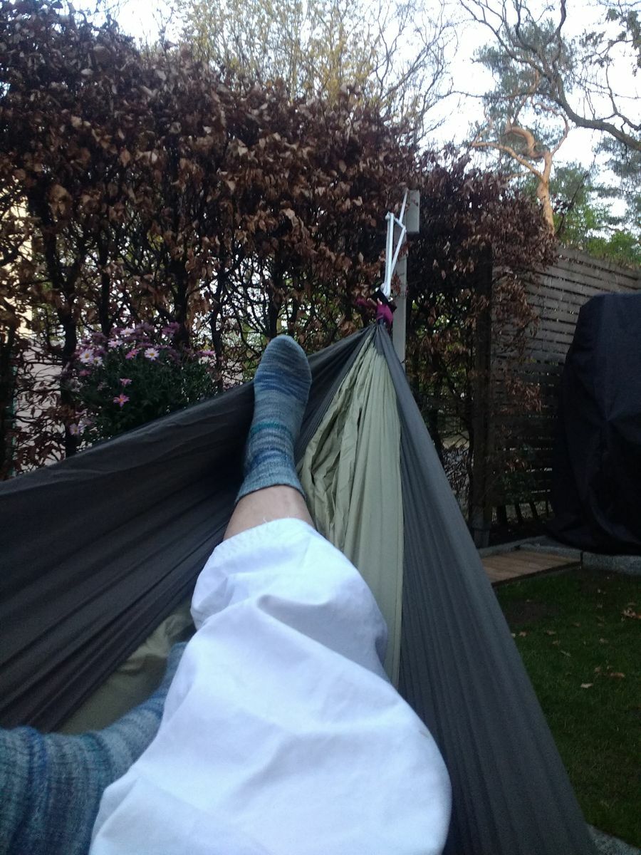 Nach den Mühen des täglichen Home-Office, bin ich gleich in die HM auf meinem Balkon gekippt. Es ist windig, relativ frisch, die Wolken ziehen, Tegel ist nicht zu hören, trotzdem recht laut. Wärmflasche an den Füßen, drei Schichten Isolation von unten und Schlafsack... herrje, es ist so gemütlich.