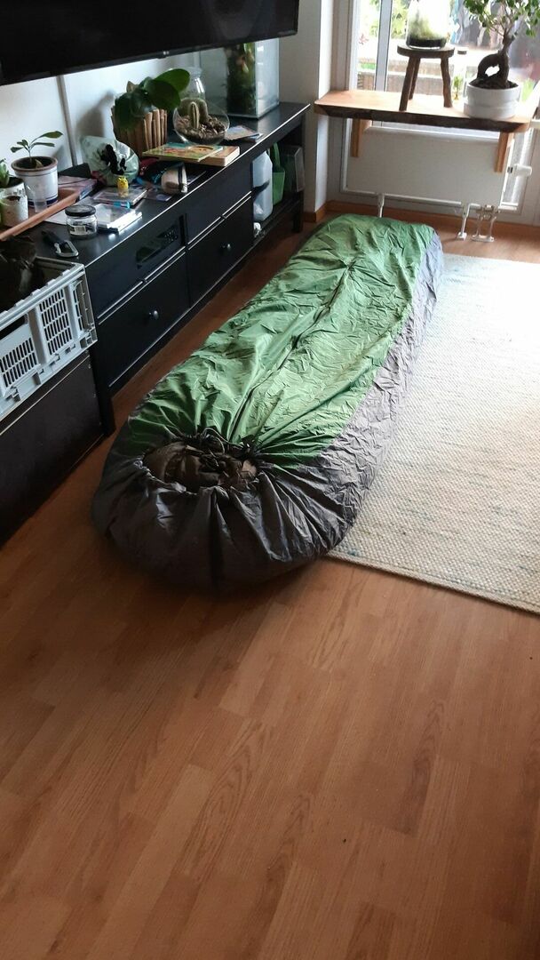 hab heute meinen Defence 4 von Carinthia bekommen und gleich mal probiert ob alles in meinen Biwaksack passt... mit Isomatte und Tropen Schlafsack im Defence 4 geht sich alles gerade noch bequem aus zum Liegen jetz kann ich das tägliche Drausenschlafen schon noch ein bisschen weiter praktizieren. Wenns mir in der Matte zu kalt wird kann ich auf den Boden ausweichen bis ich mir ein vernünftiges Hängemattensetup leisten kann