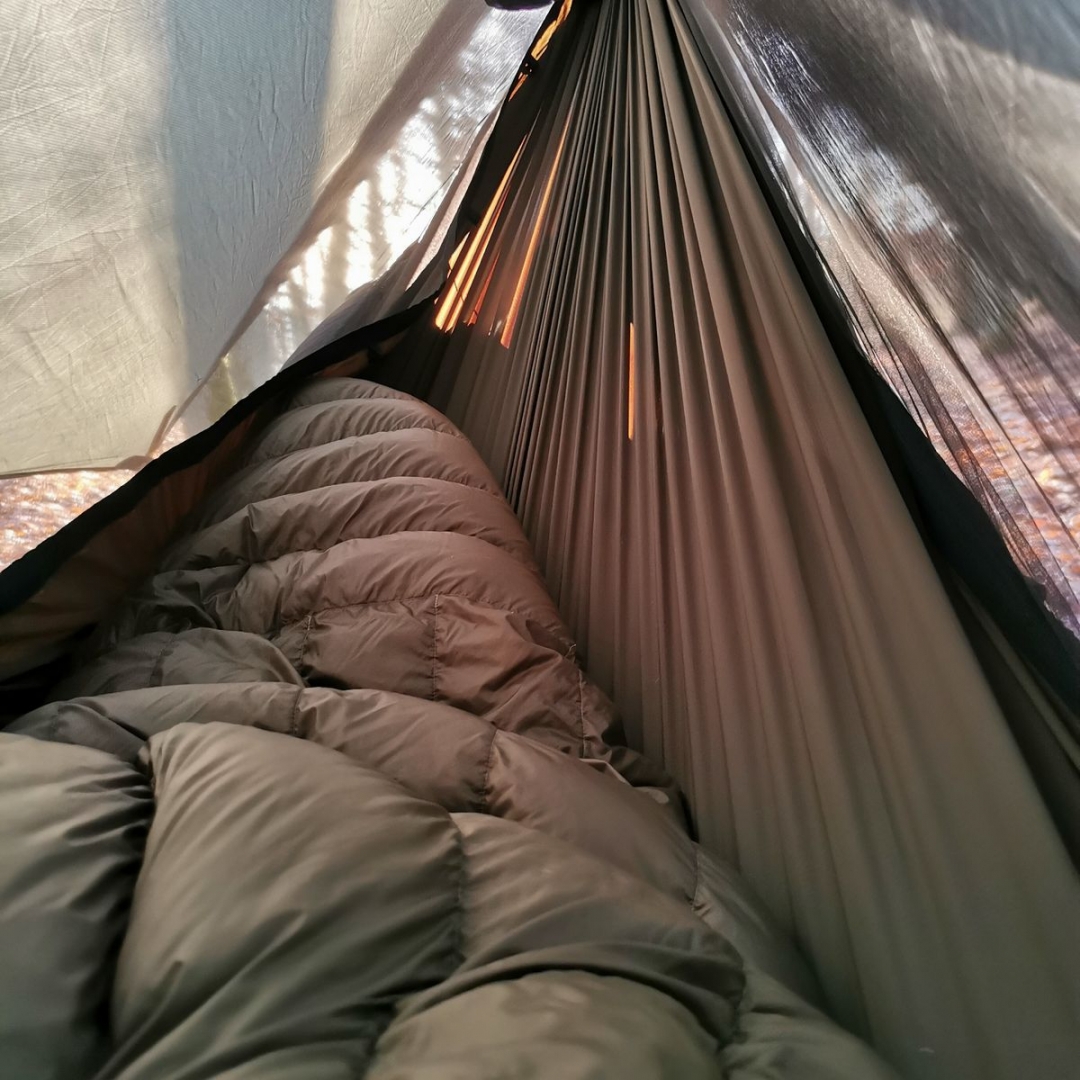 Und wie ich da so drin lag kam es mir in den Sinn, dich eventuell einen Daunen-Underquilt ins Haus zu holen. Spart halt viel Packmaß im Kontext zur Wärmeleistung.