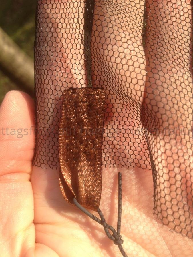 An der mit dem Netz vernähten Lasche wird die Gummischnur befestigt.