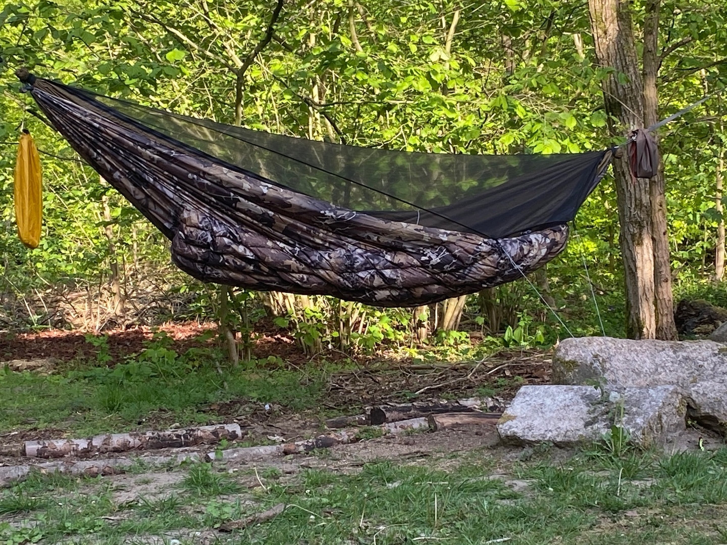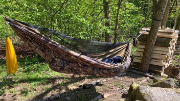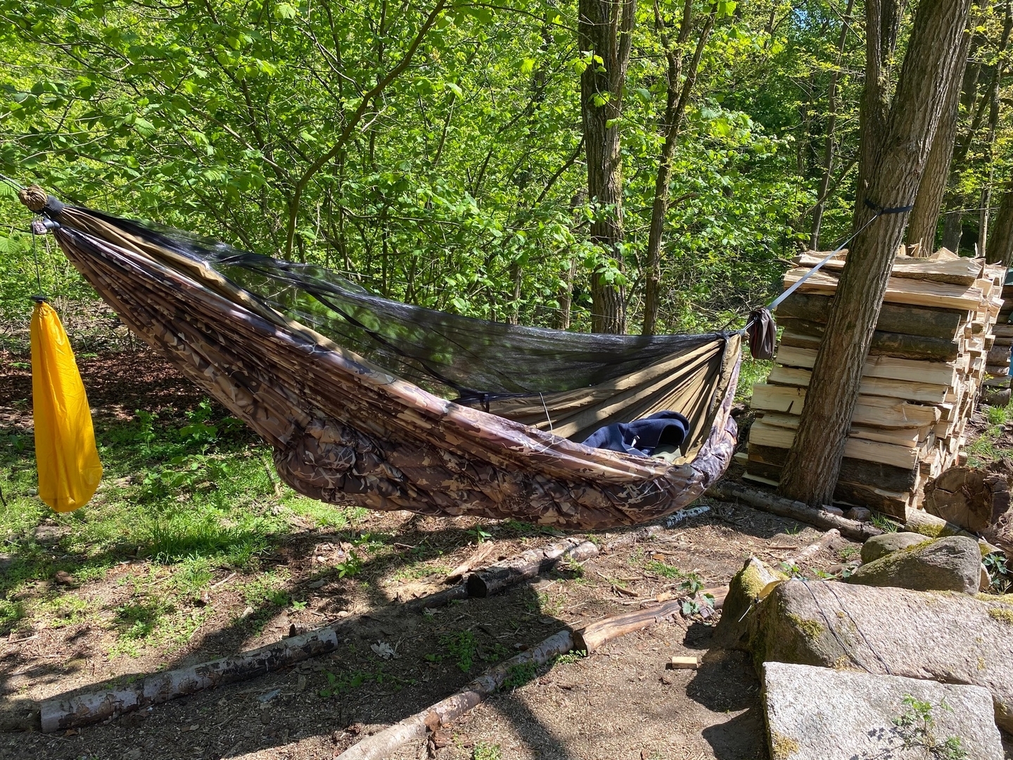 Da müsste ich schon noch einiges Holzen, um in diesem Knick eine Matte hängen zu können.