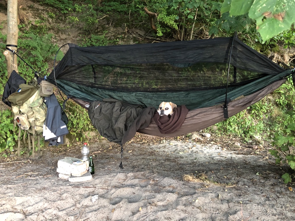 Ich war mal wieder eine spontane Nacht am Strand. Diesmal ohne Wanderkarre (sind ja nur 2km bis zum Hängeplatz) und da ich zu Hause schon reichlich vorgefuttert habe auch ohne Kochgeschirr.