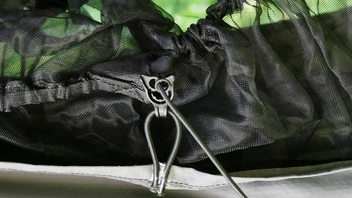 Bißchen viel Aufwand, ein Zelt aufzuhängen um die Ausrüstung zu verwahren, aber ok.
