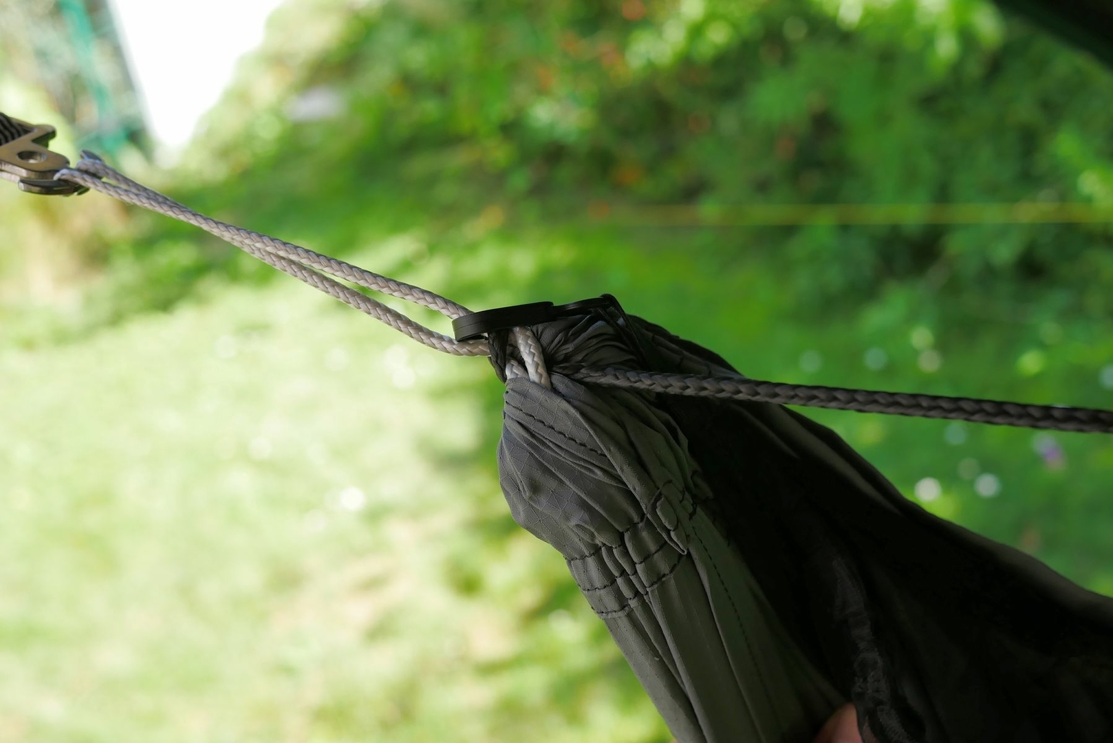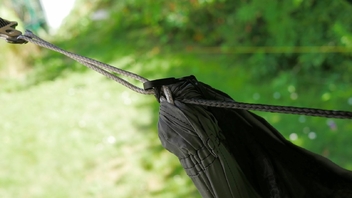 Bevor ich es mir gemütlich machen wollte habe ich die verstellbare Ridgeline an meiner kürzeren HM noch gegen eine ordentlich passende ausgetauscht. Also Dyneema und Spließzeugs herausgeholt und losgelegt...