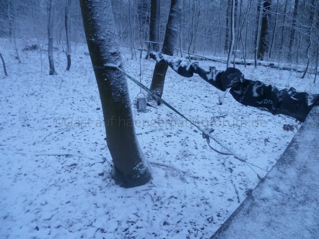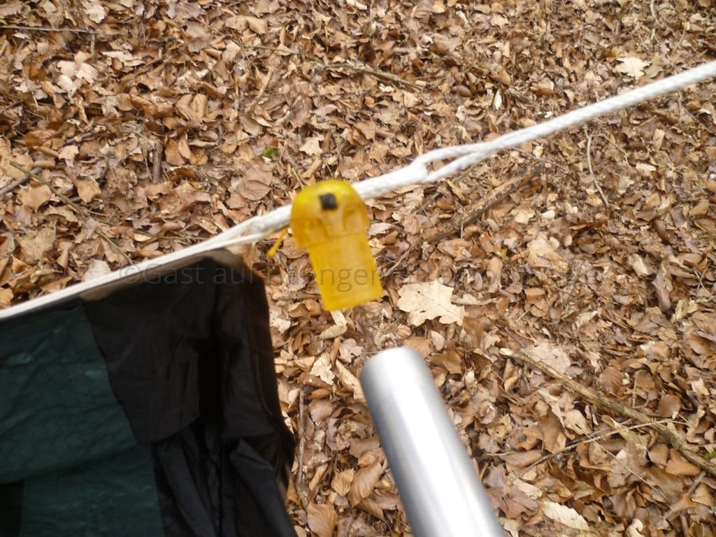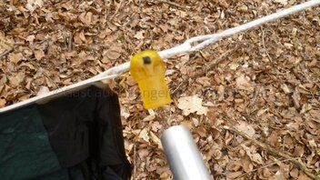So muss das sein! Wenn der Förster Deine Hängematte nur entdeckt, weil er über die Abspannung stolpert, dann hast Du die richtigen Farben gewählt. ![]()