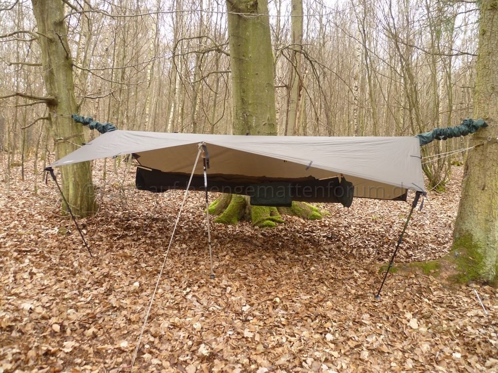 Wenn es ein "normales DD-Tarp 3x3 ist ... dann bleibt noch genügend Stoff für einen passenden Stoff-Sack übrig. :yes: