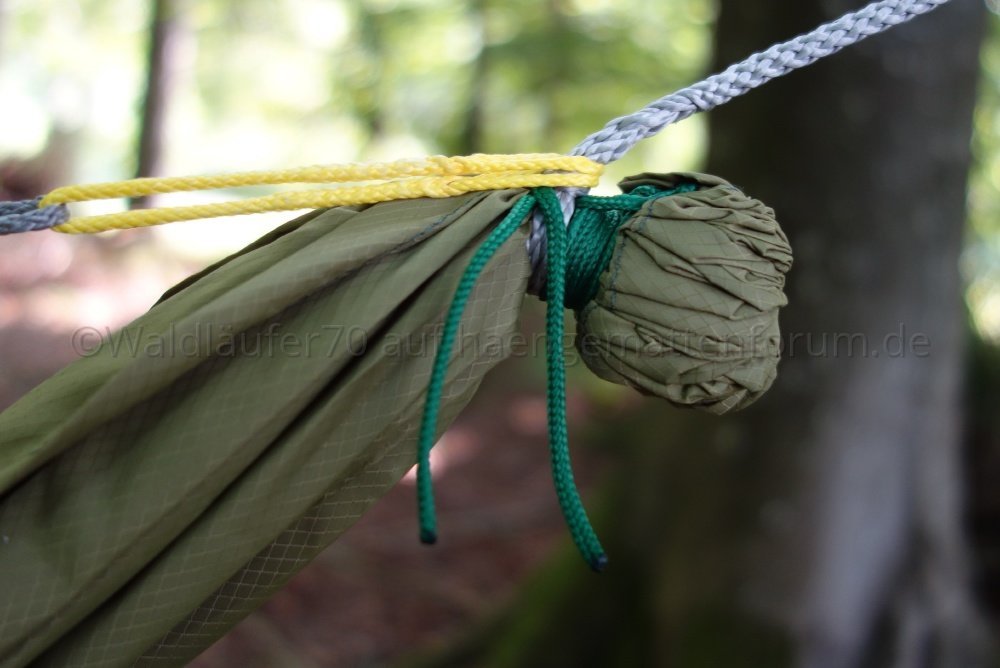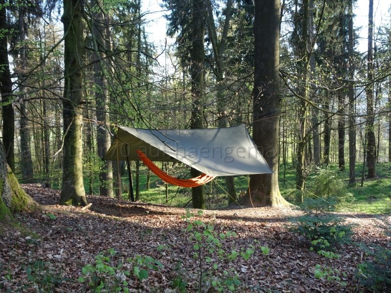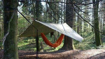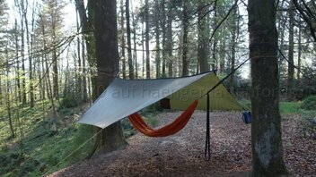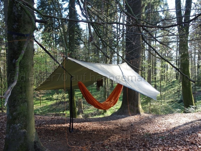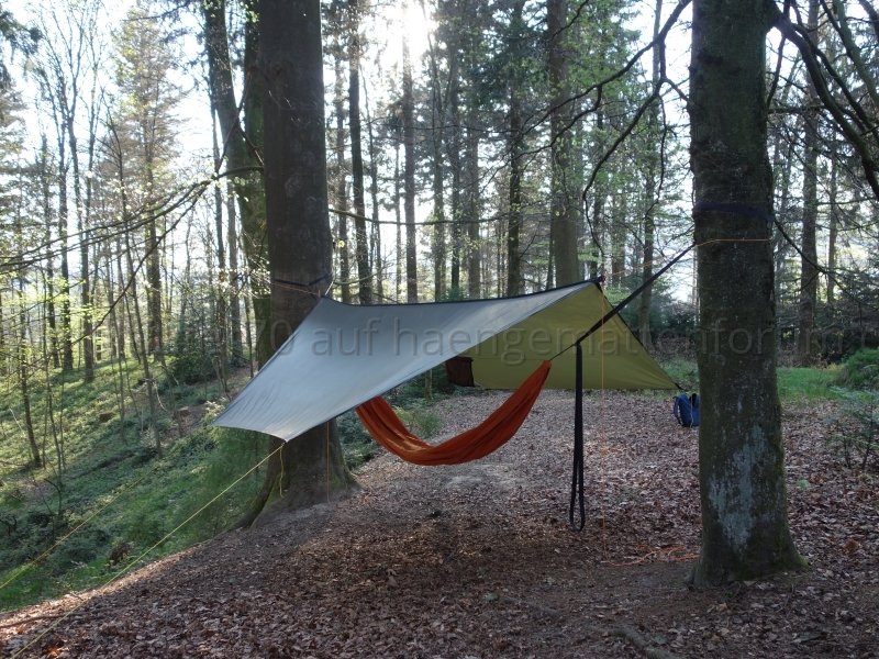 Hier ein paar Fotos von selbst gemachter Hängematte und Tarp: