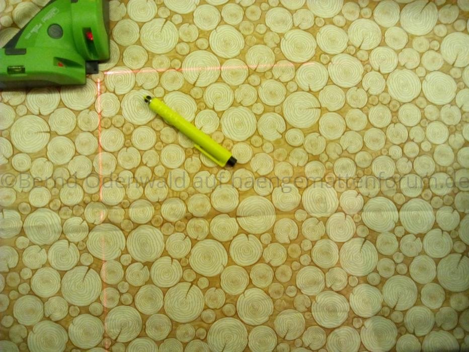 Unten einmal ausmessen wie breit Du zuschneiden willst, Laser anlegen, einschalten und die Markierung wird lasergerade verlängert.